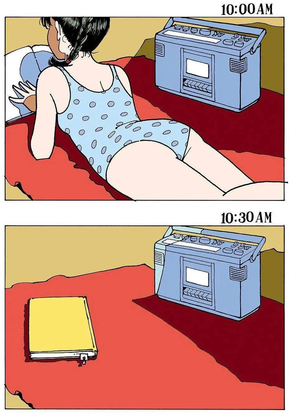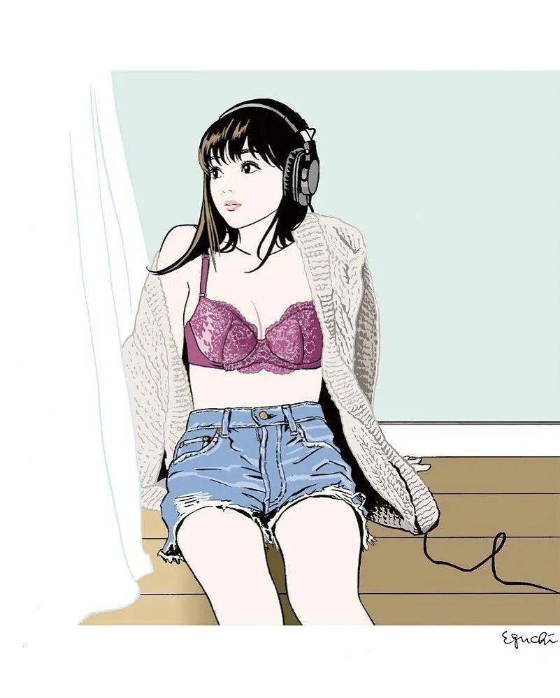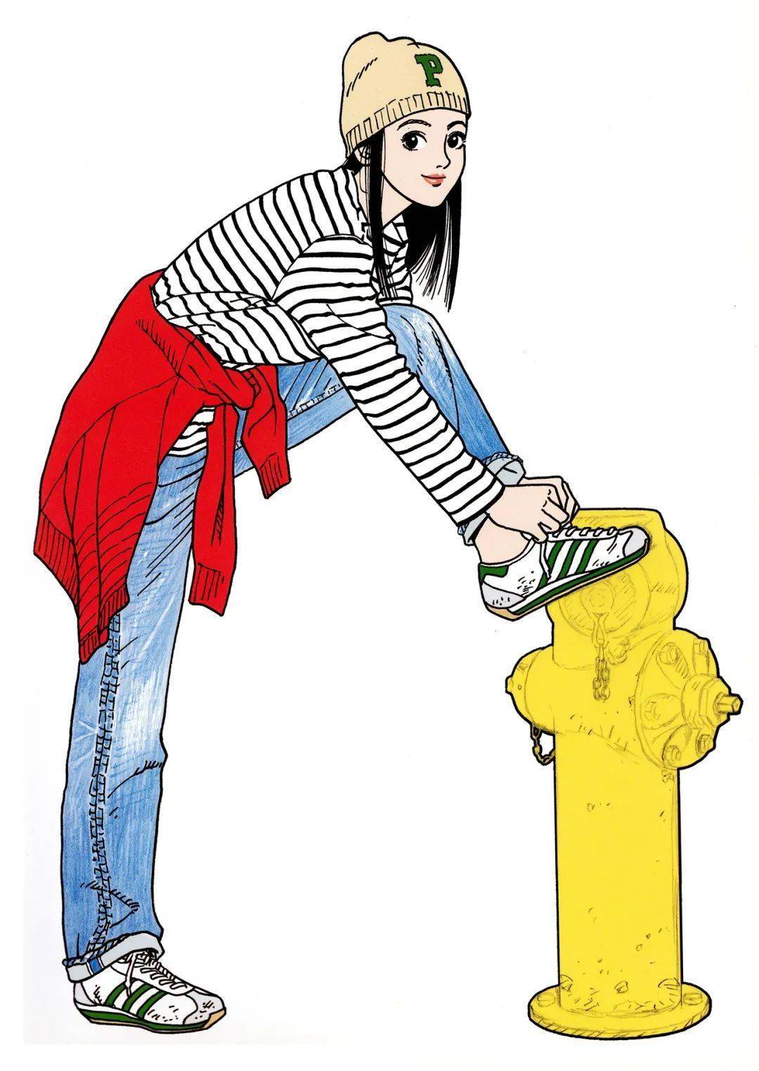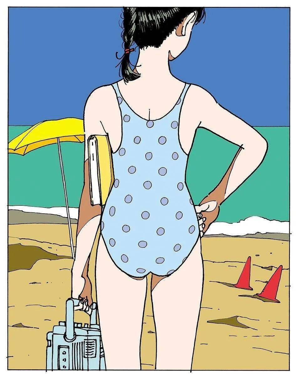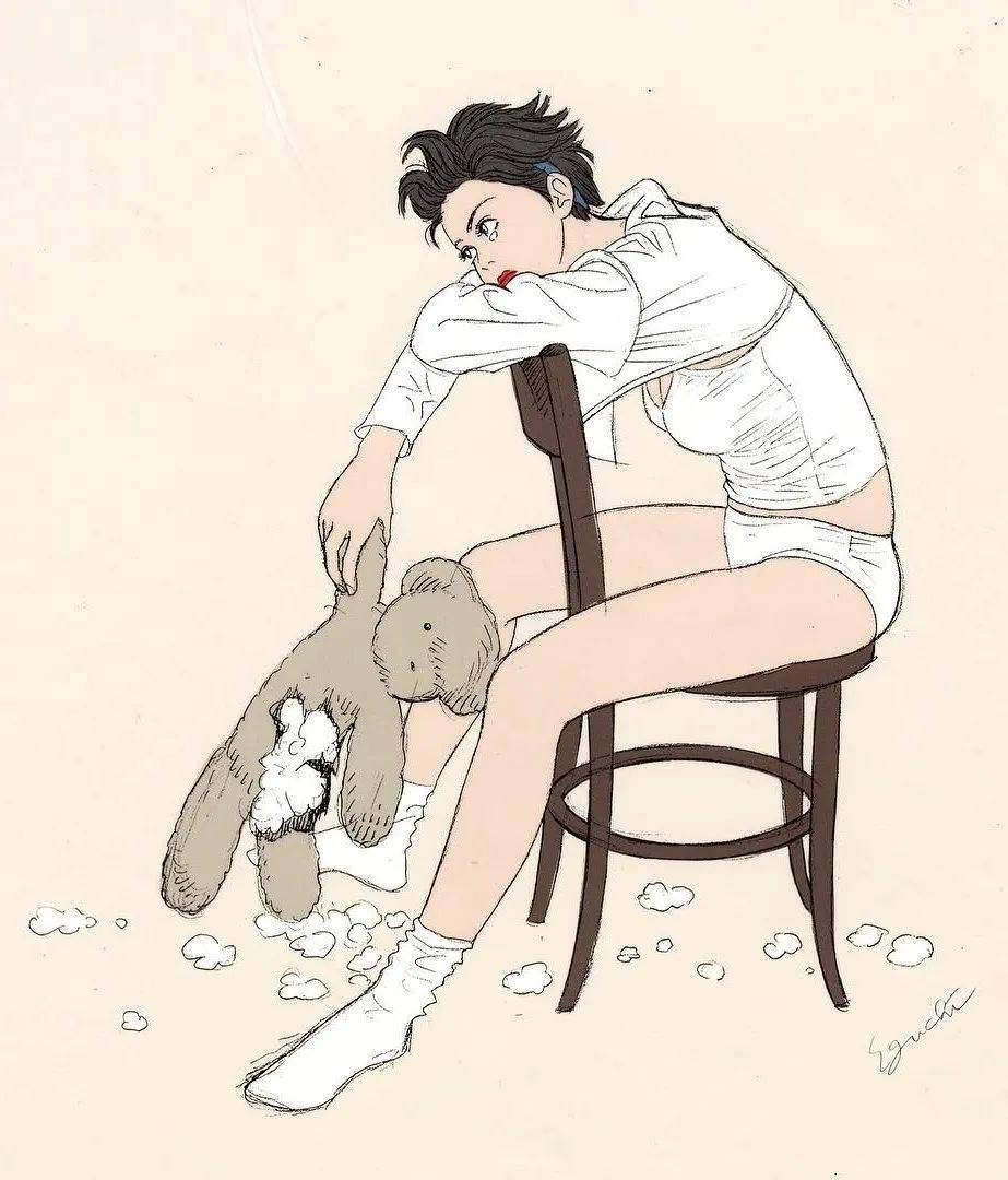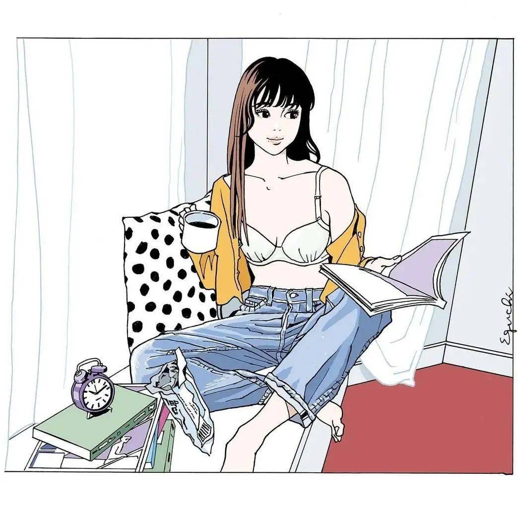 江口寿史喜欢简单的色系搭配,加上几笔简洁的线条,不抢眼,却亮眼。