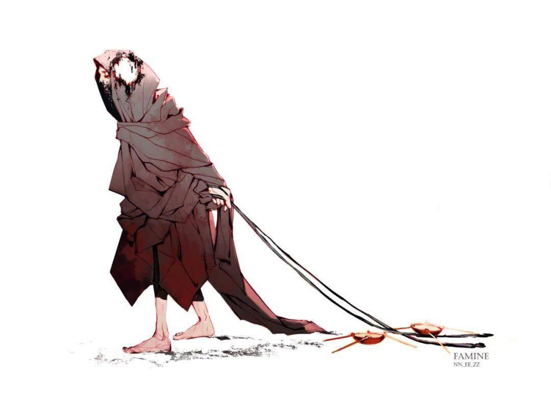 来自俄罗斯的95后插画师Nez,画风非常克系,内容有些诡谲,线条又让人看得很爽。