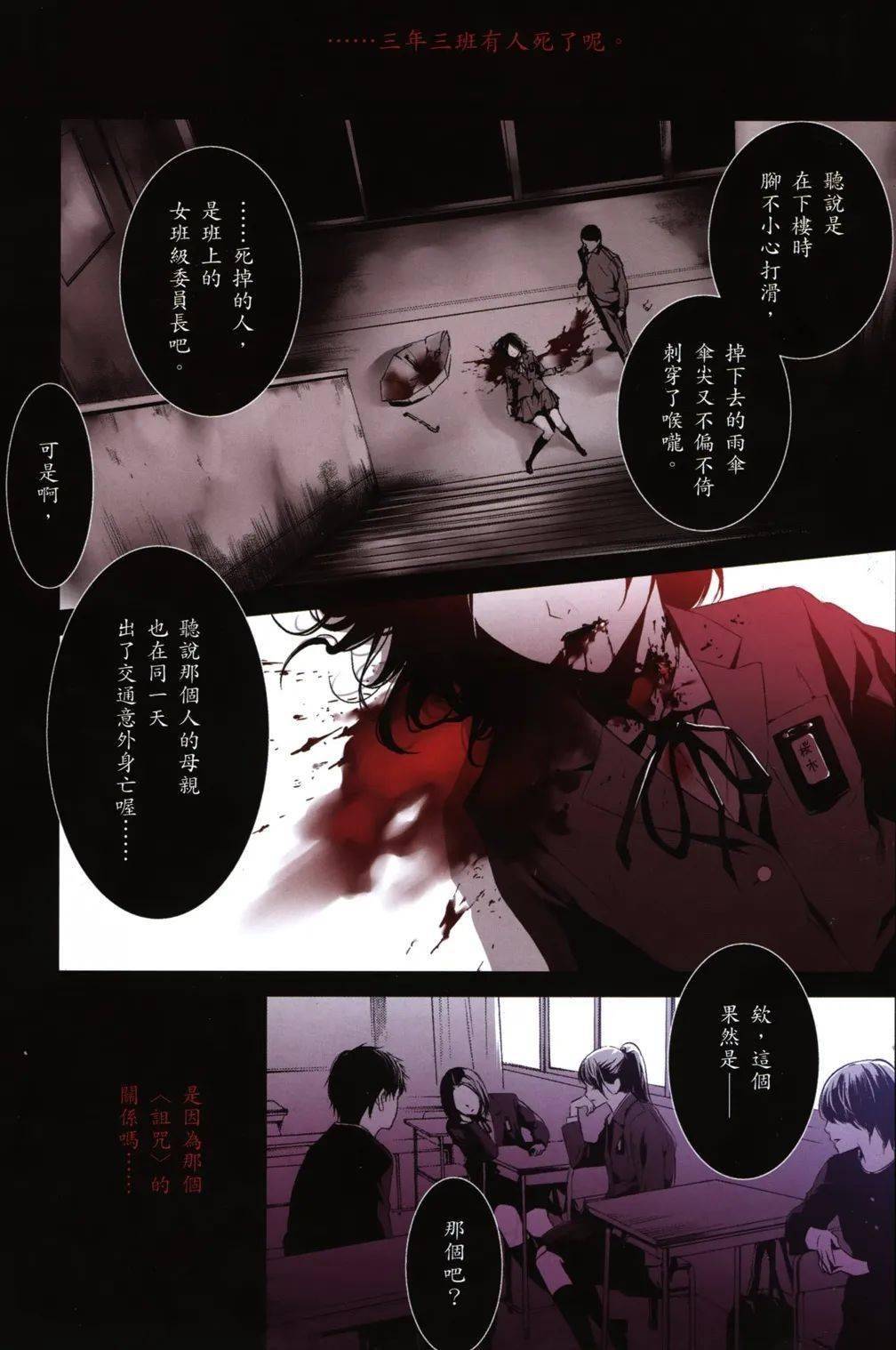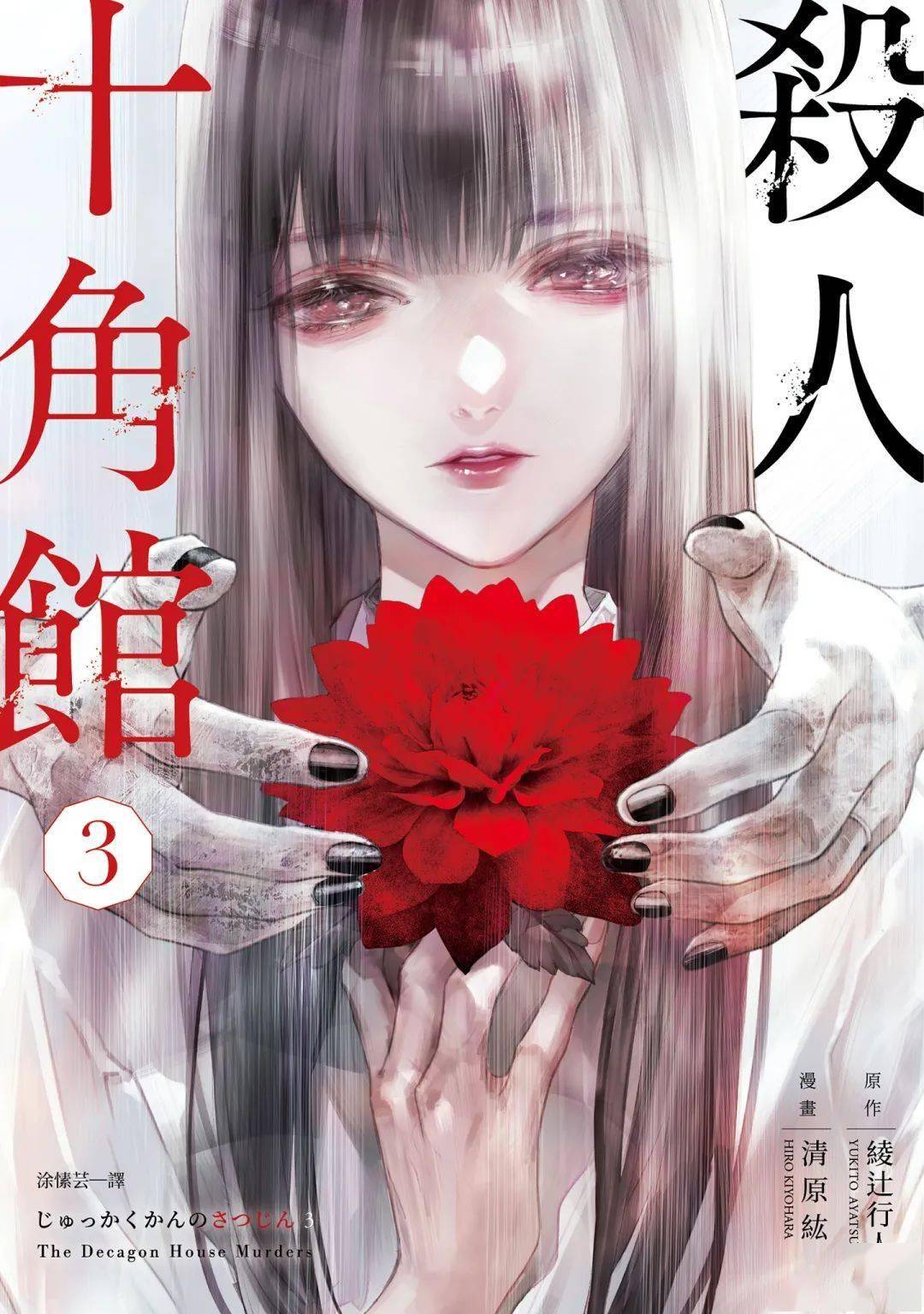 《another替身》 《十角馆事件》 (不连贯片段) 绫辻行人:“清原紘老师会非常仔细地研读原作小说,将其消化成自己的东西。就连一般人认定的‘只有文字能表现’的片段,他也能利用漫画特有的技巧加以处理后,完美地呈现。”