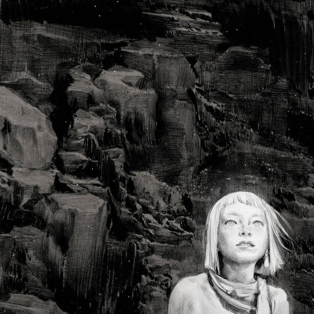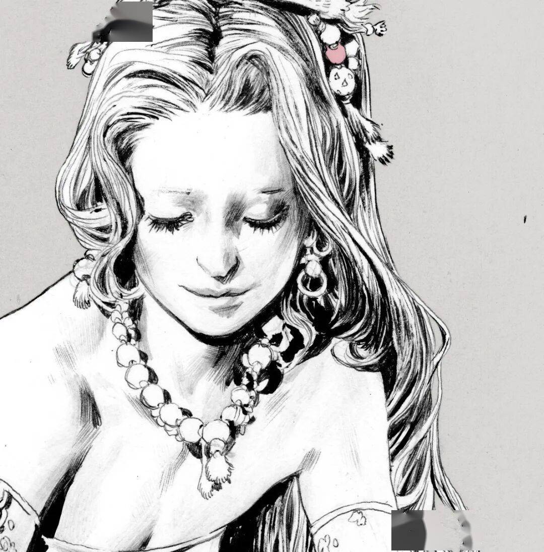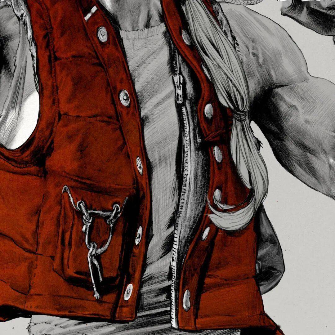 线条在他笔下不只是轮廓,更是情绪的血肉。排线细腻密集却有序,阴影层次分明。