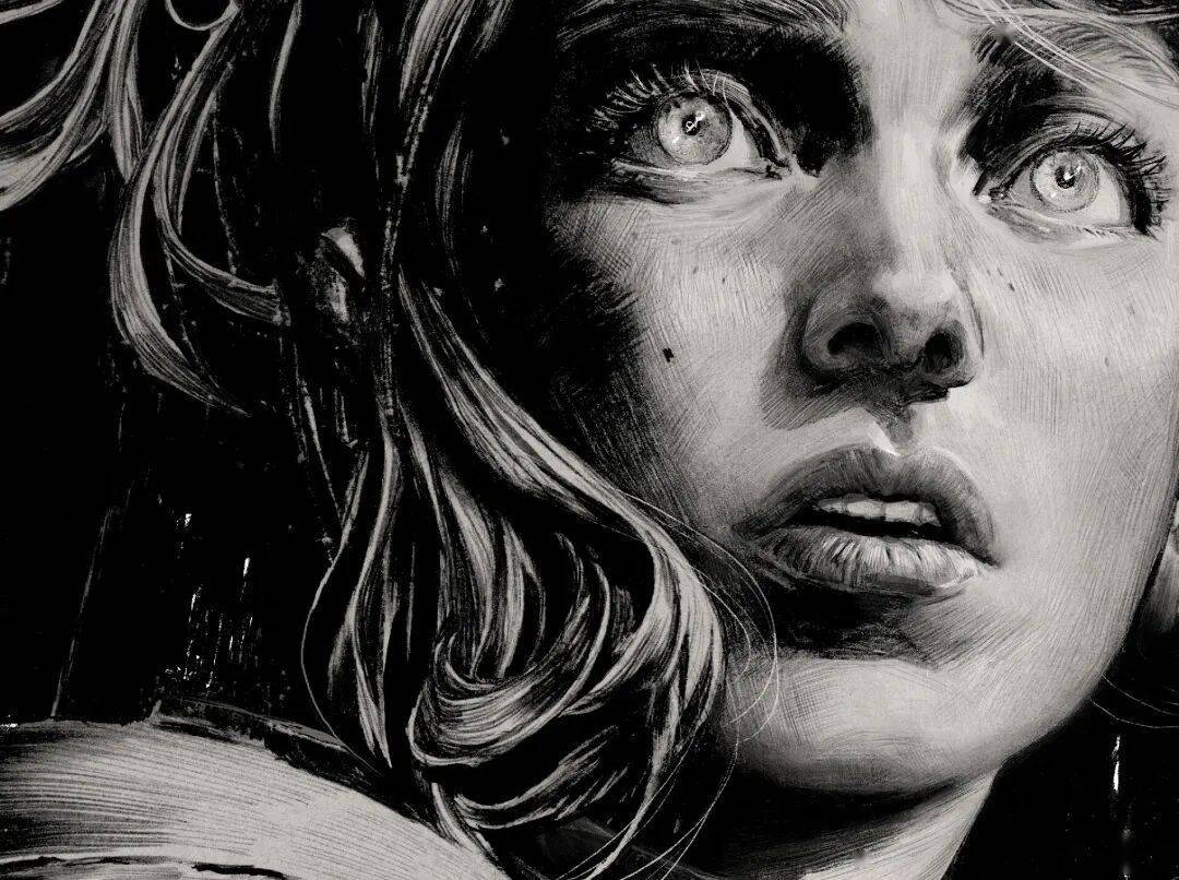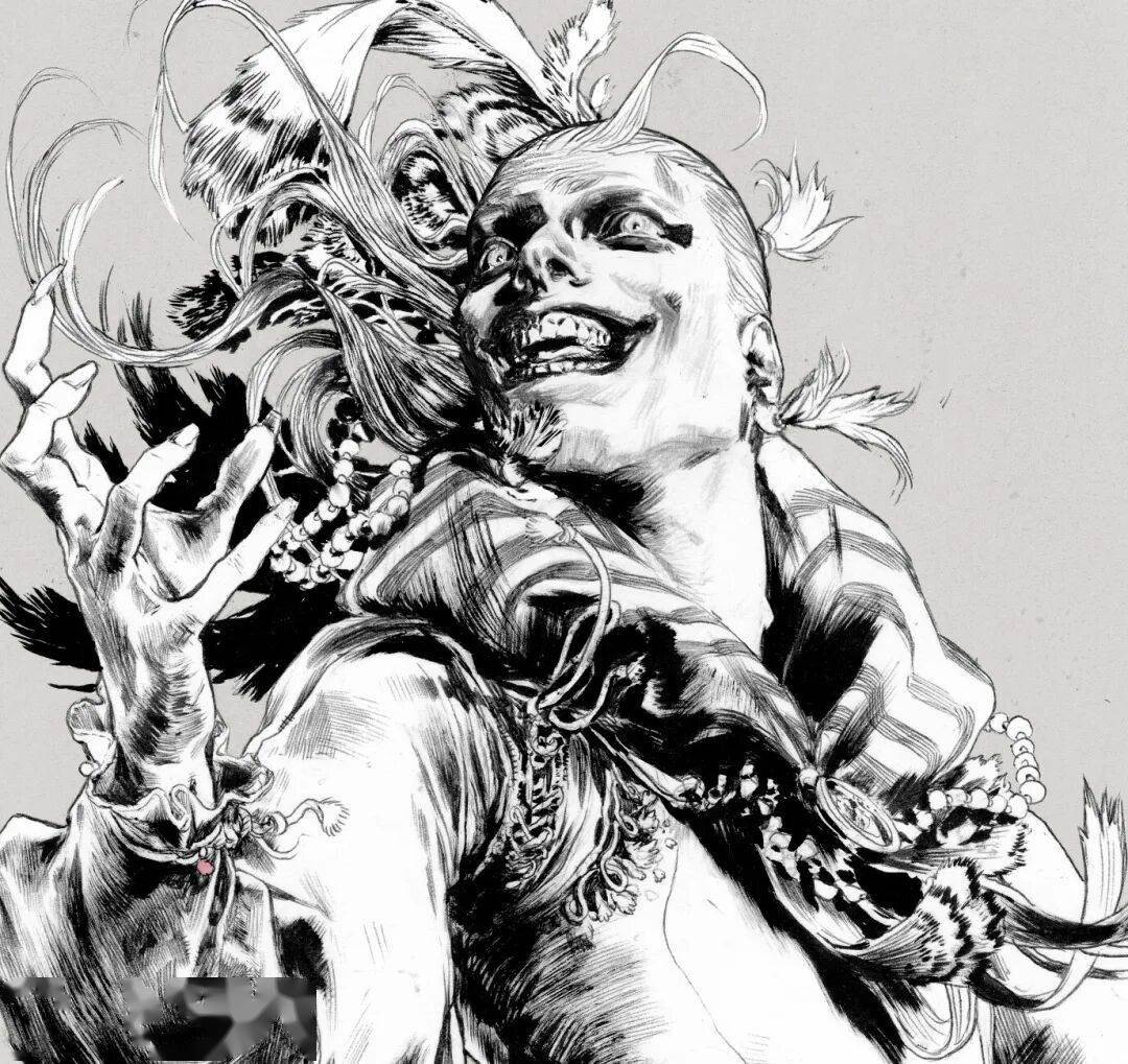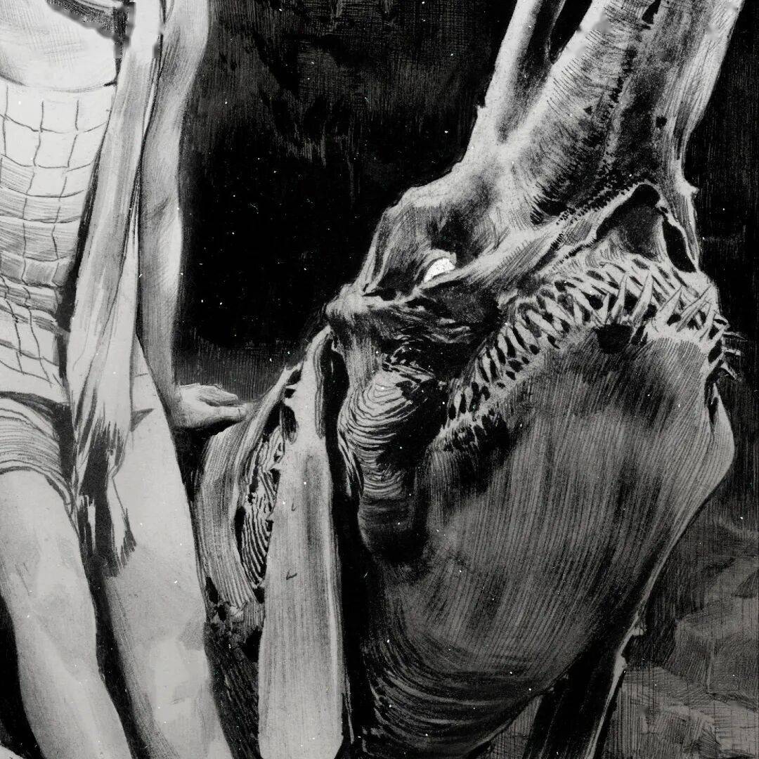 线条在他笔下不只是轮廓,更是情绪的血肉。排线细腻密集却有序,阴影层次分明。