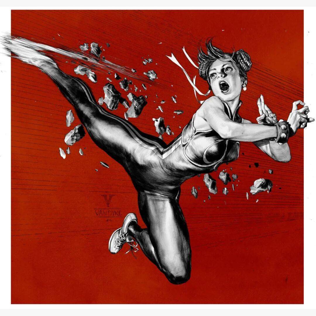 比如《街头霸王》中灵动矫健的春丽,在他笔下变成了更具野性力量的战士,肌肉线条分明,眼神如刀。