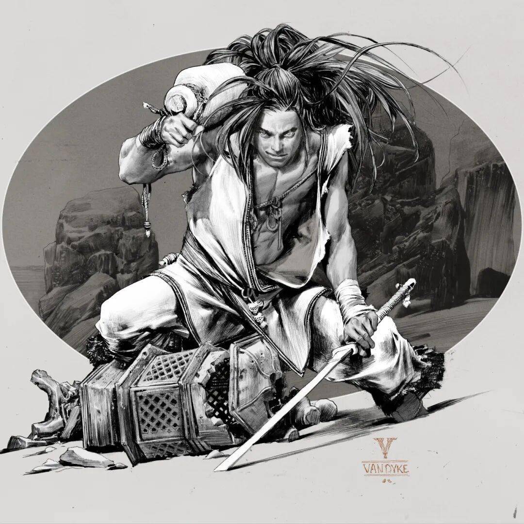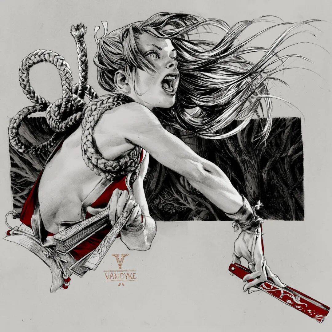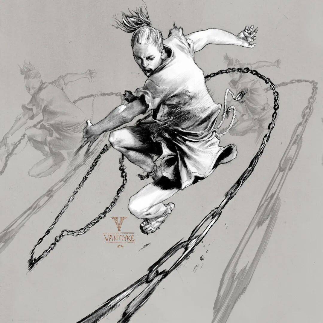 虽说Geirrod Van Dyke画的是幻想题材,角色却带着写实的重量,肌肉的紧绷、衣褶的流动、眼神的凌厉,皆栩栩如生。