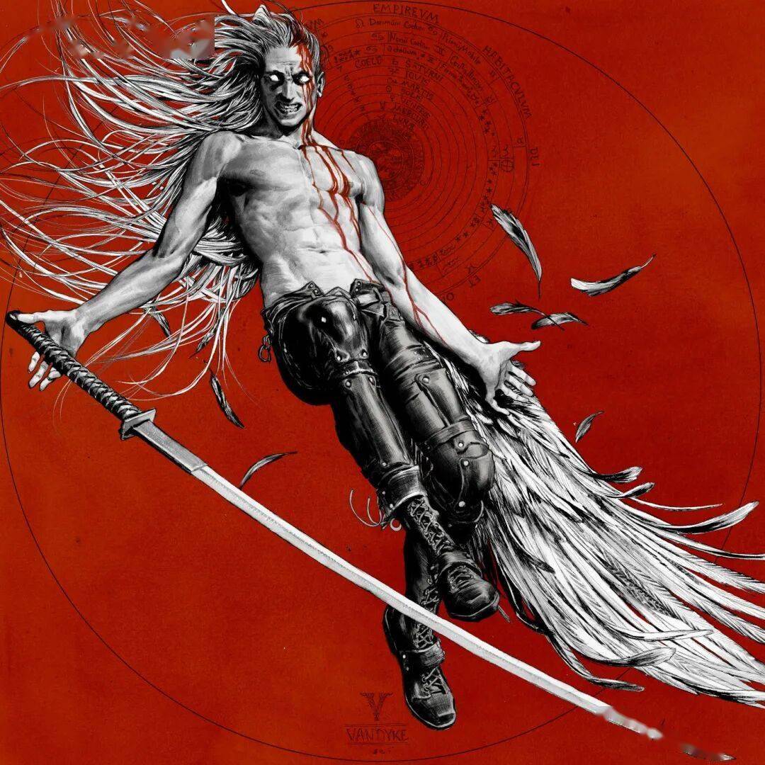 最终幻想7 萨菲罗斯 极致的黑白、惹眼的红色,散发着如同古典版画般的深邃气质,又充满了现代数字艺术的张力。