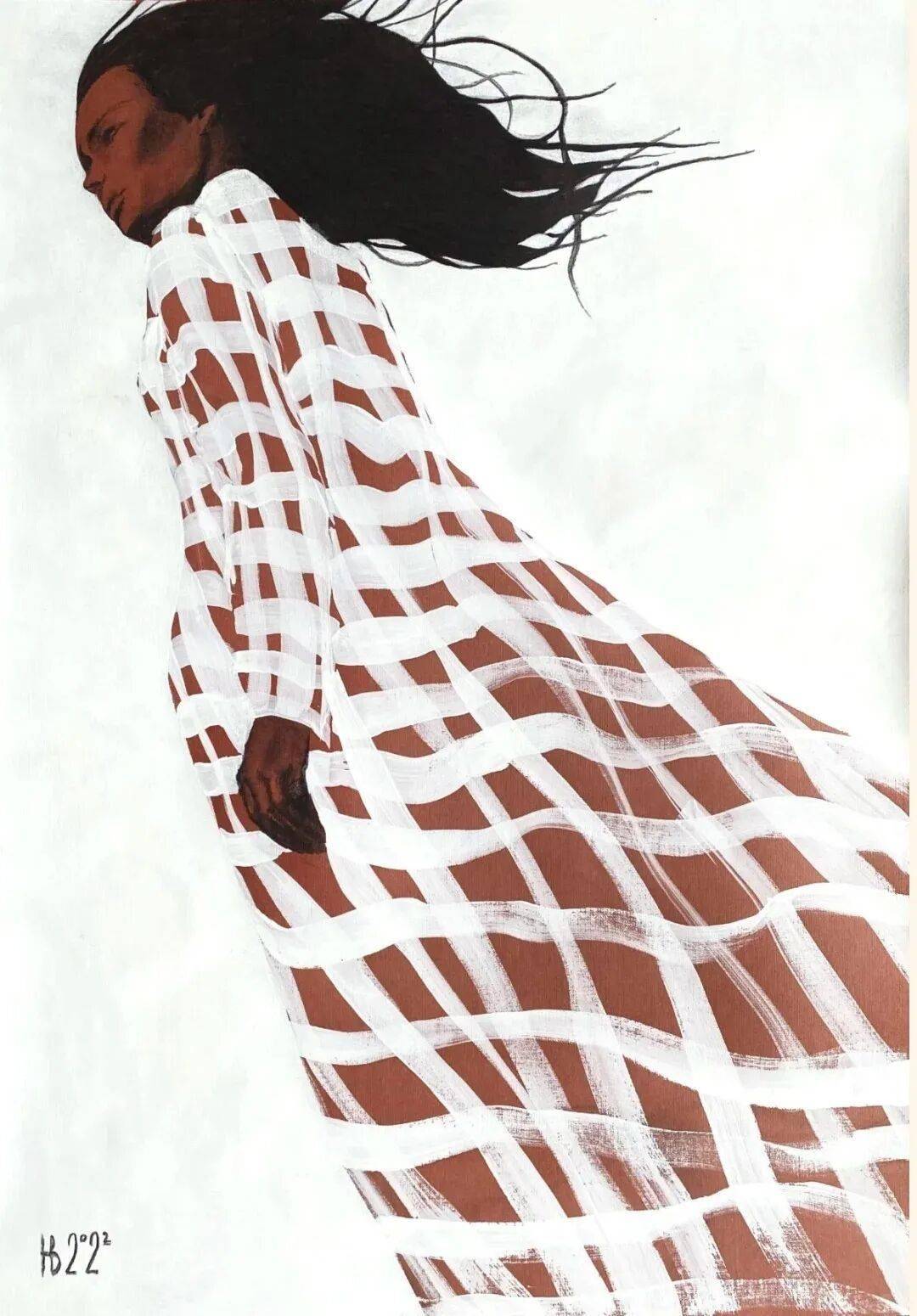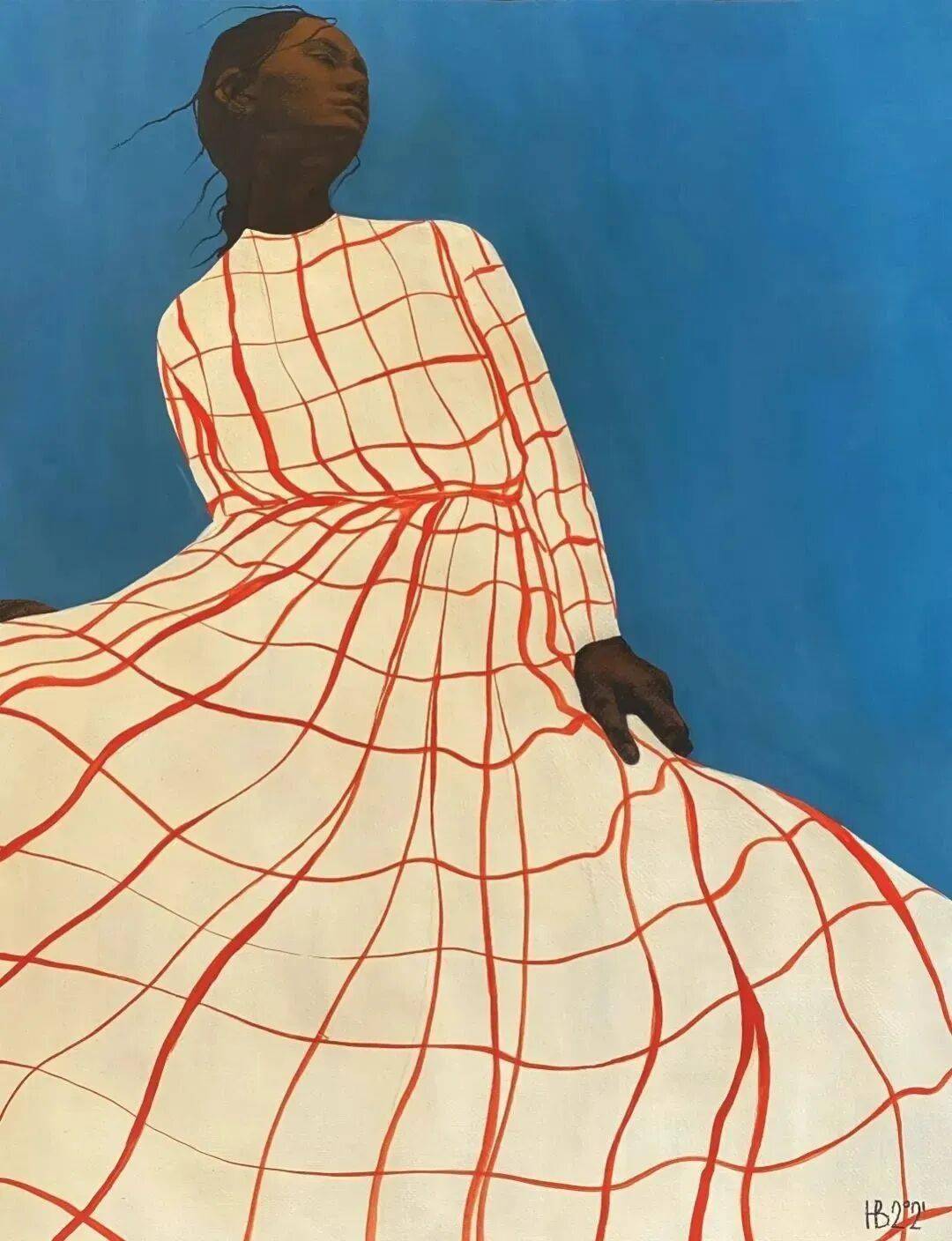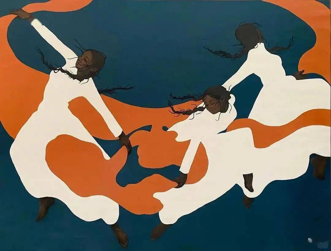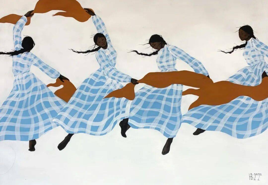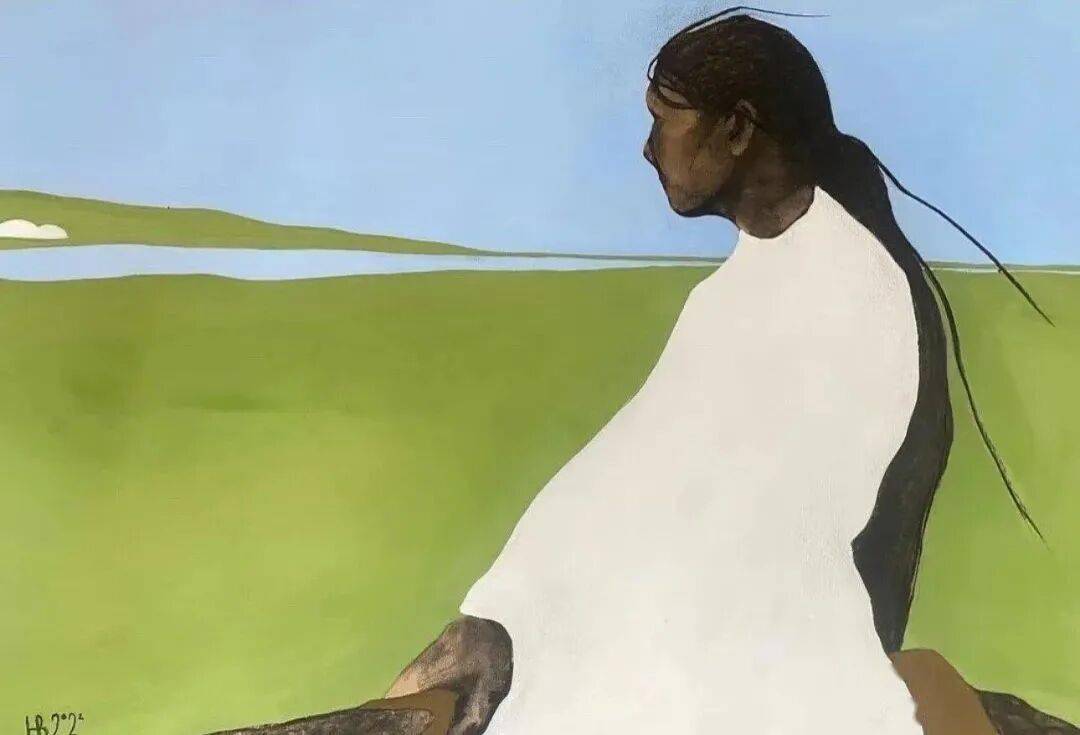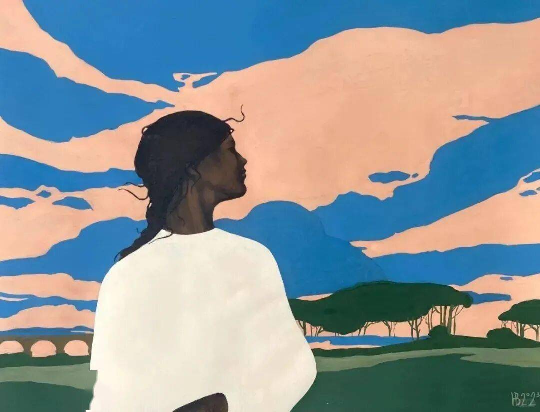 画中的女性,常常是乌黑的肌肤与麻花发辫,有时一身素白,有时身着民族服饰,她们与风共舞,与山海相拥。