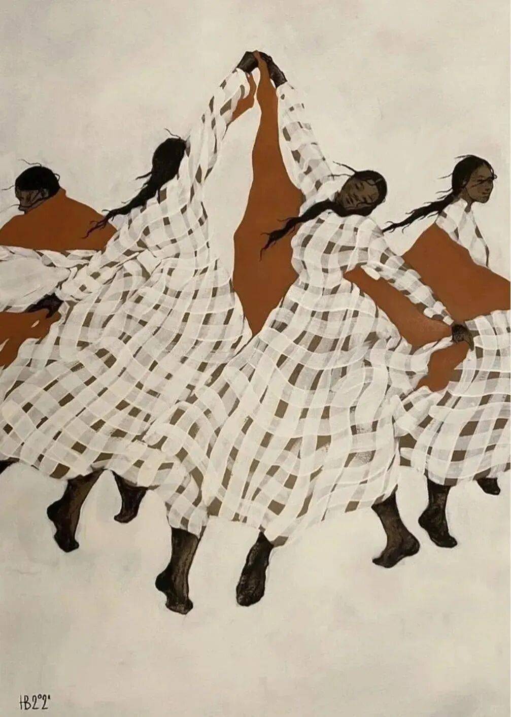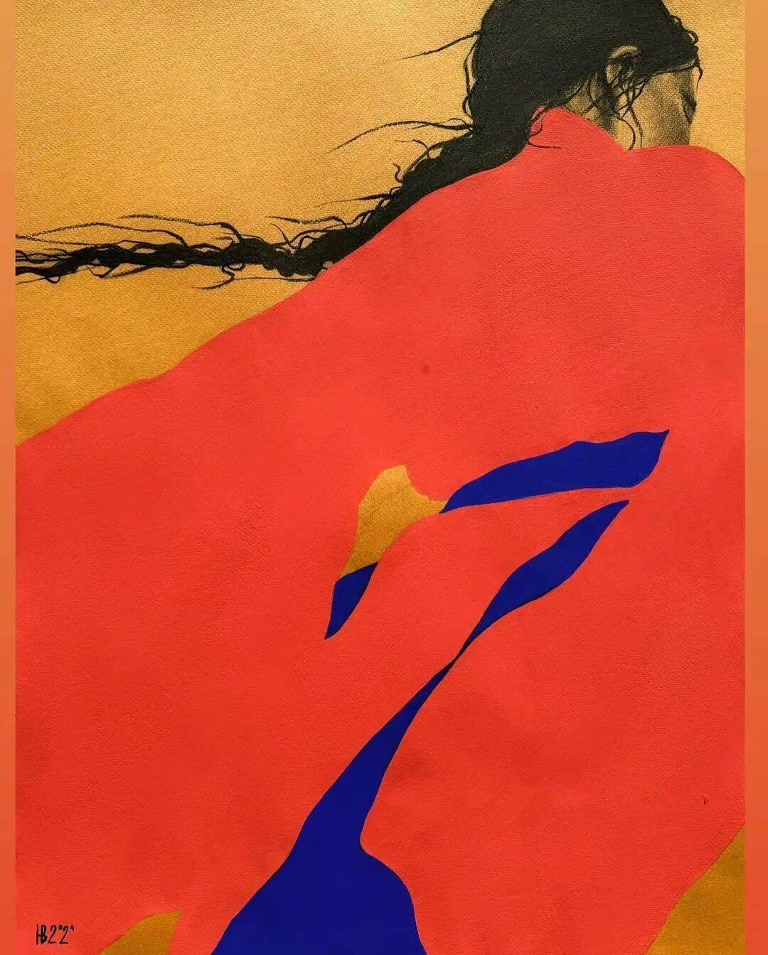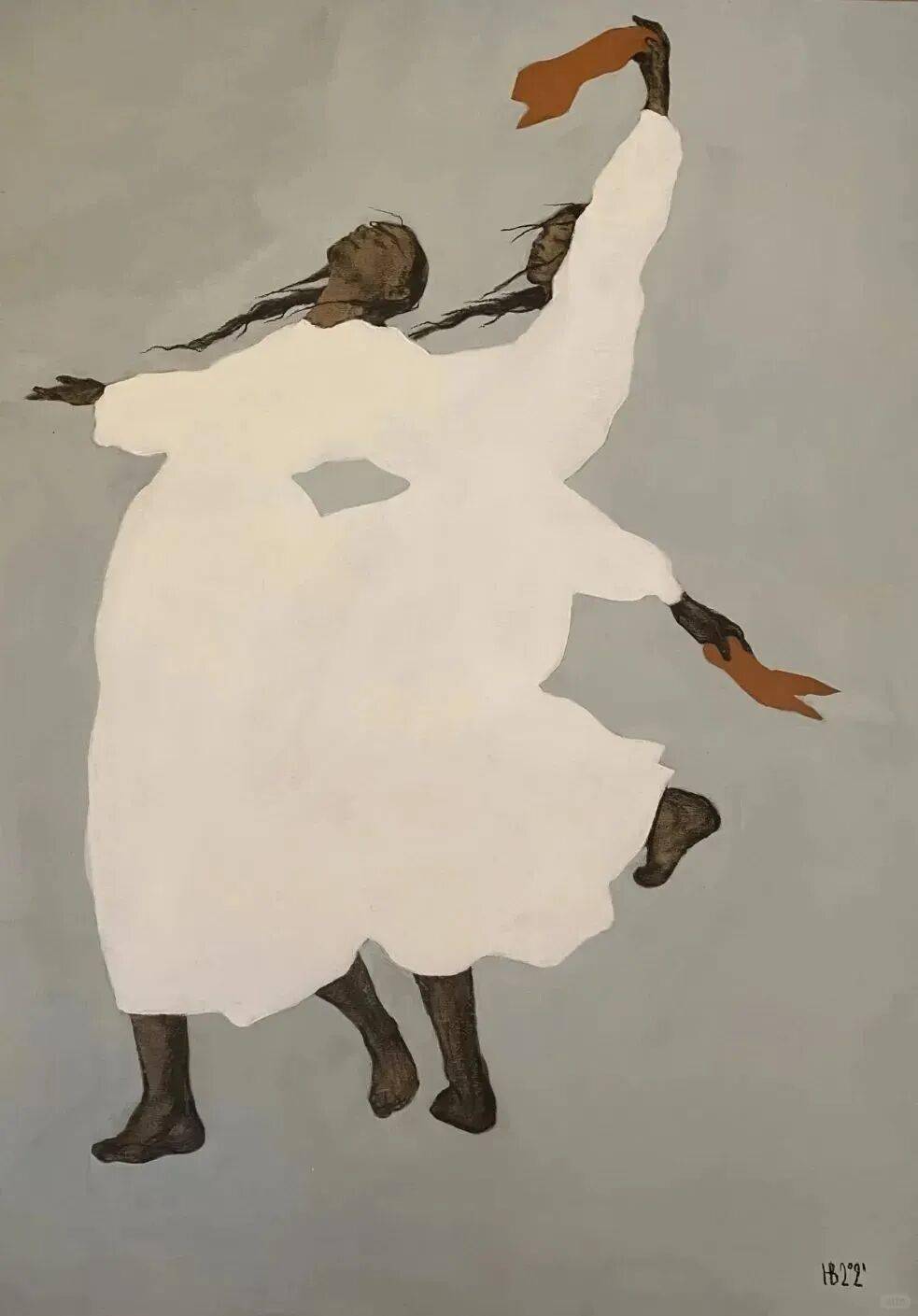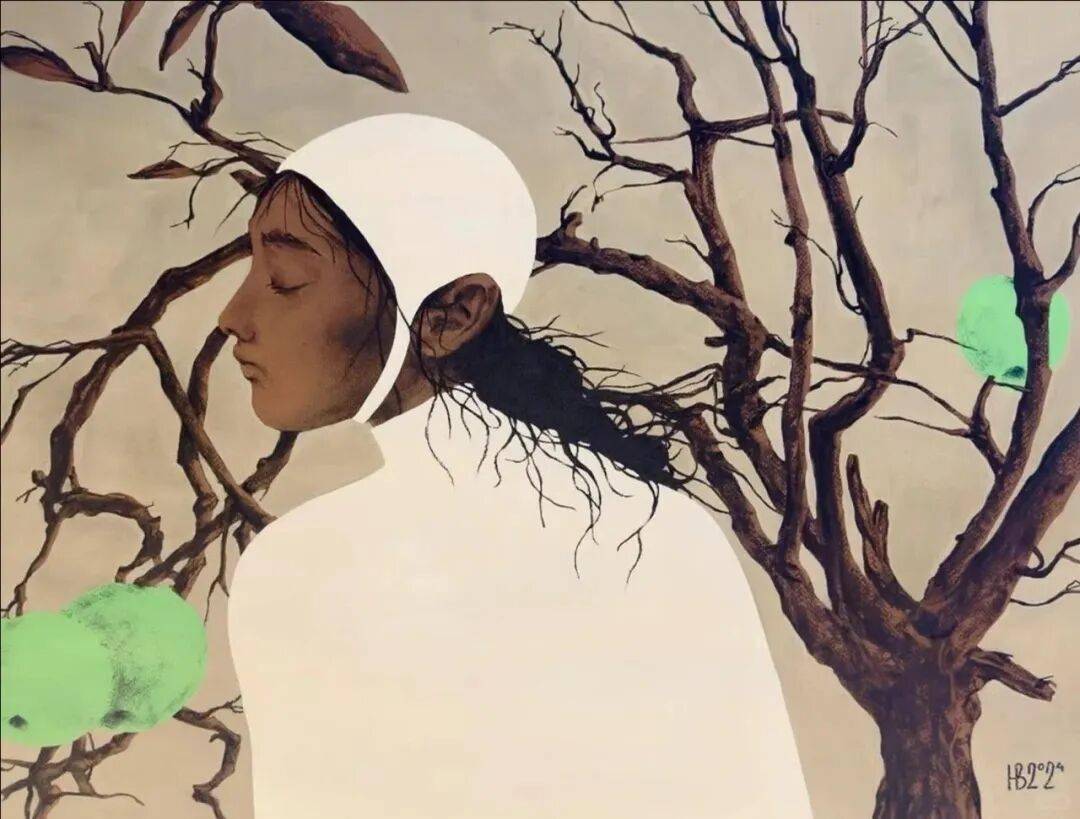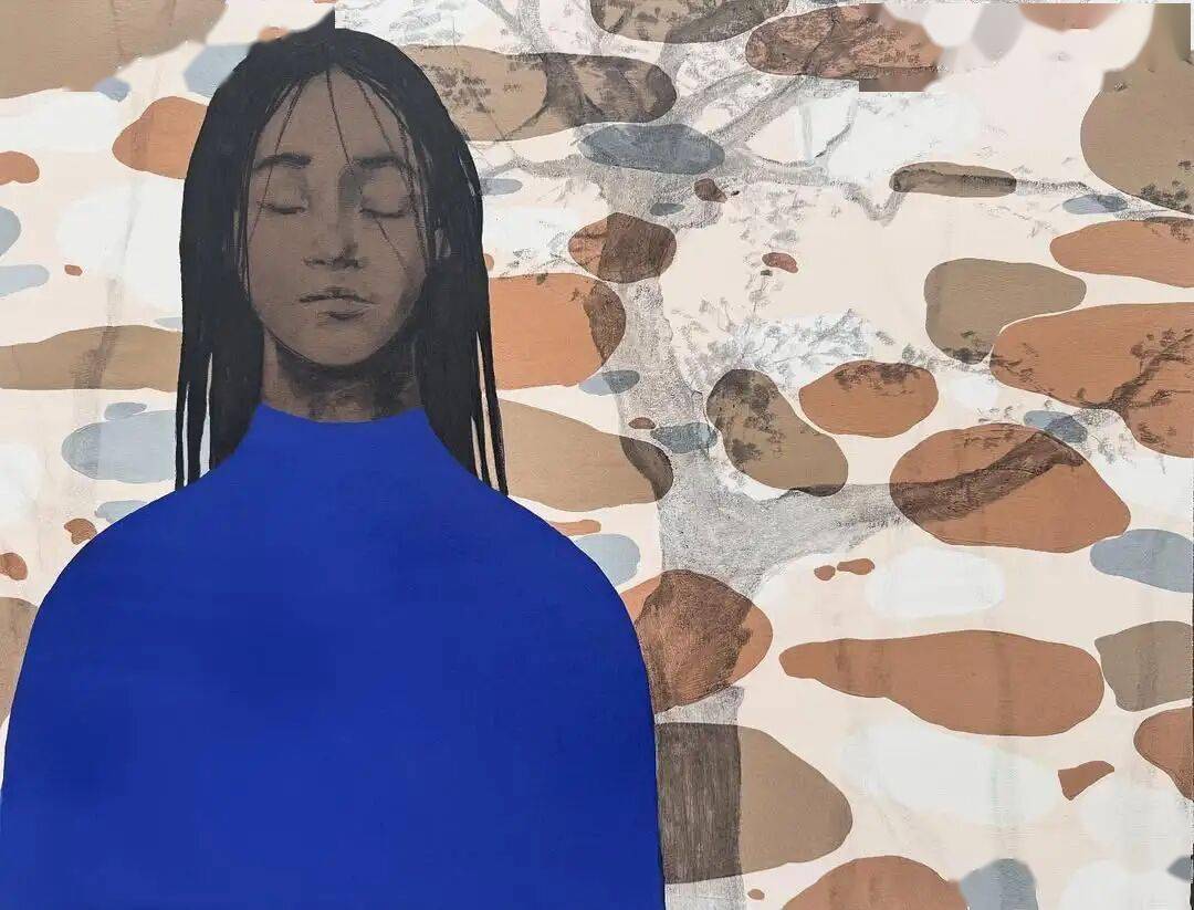 画中的女性,常常是乌黑的肌肤与麻花发辫,有时一身素白,有时身着民族服饰,她们与风共舞,与山海相拥。
