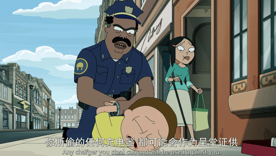 莫蒂因为小时候偷了充电器,被警察当场逮捕,坐了很多年的牢。