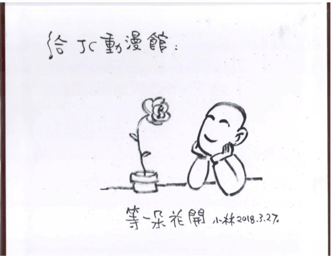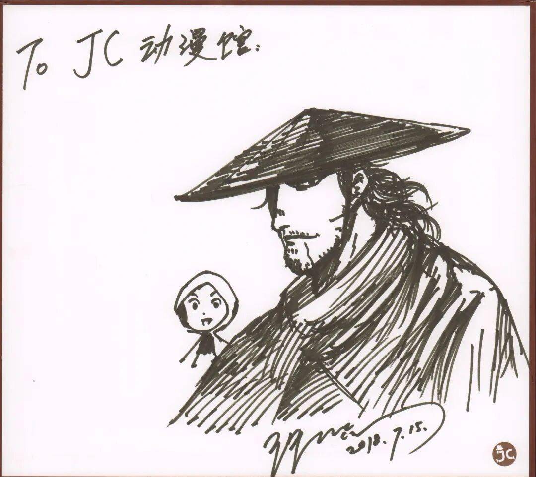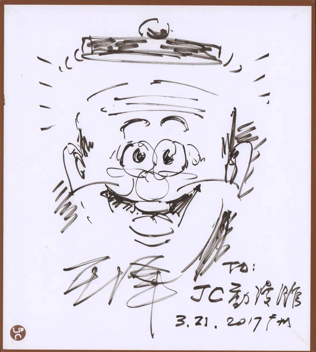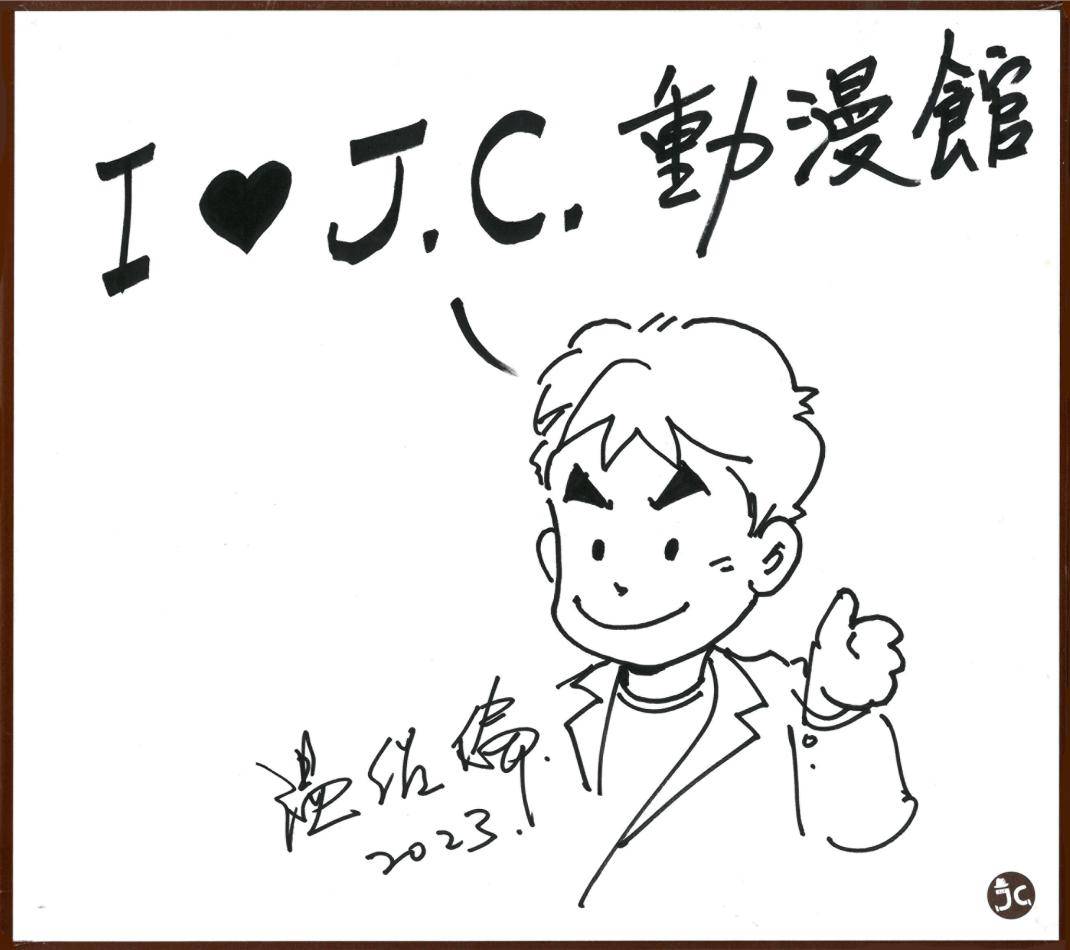 台湾漫画家钟孟舜,也是台湾漫画大师郑问老师的弟子,钟孟舜老师是馆长的好友,2017年,他在JC动漫馆留下此签绘。