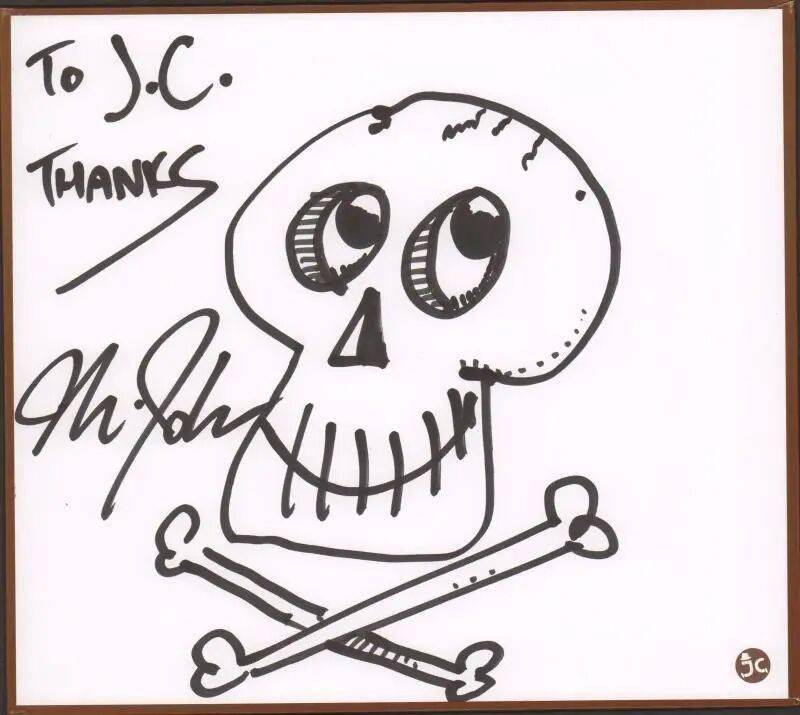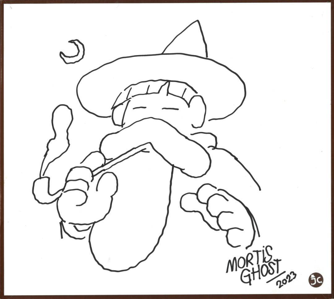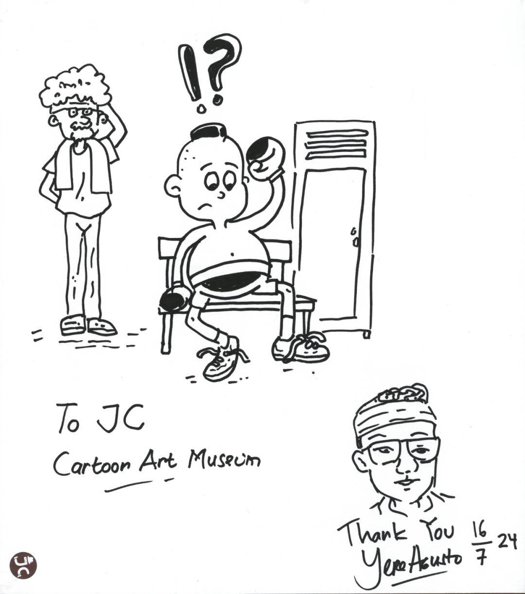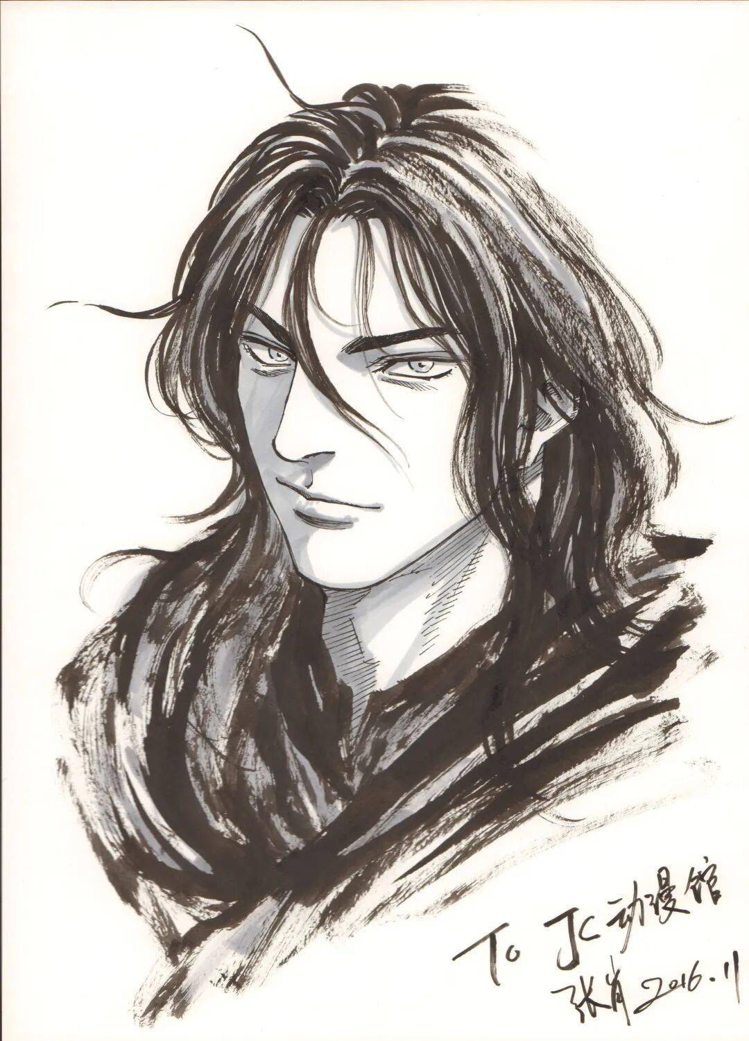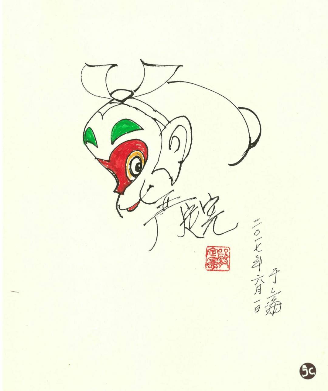 台湾漫画家钟孟舜,也是台湾漫画大师郑问老师的弟子,钟孟舜老师是馆长的好友,2017年,他在JC动漫馆留下此签绘。