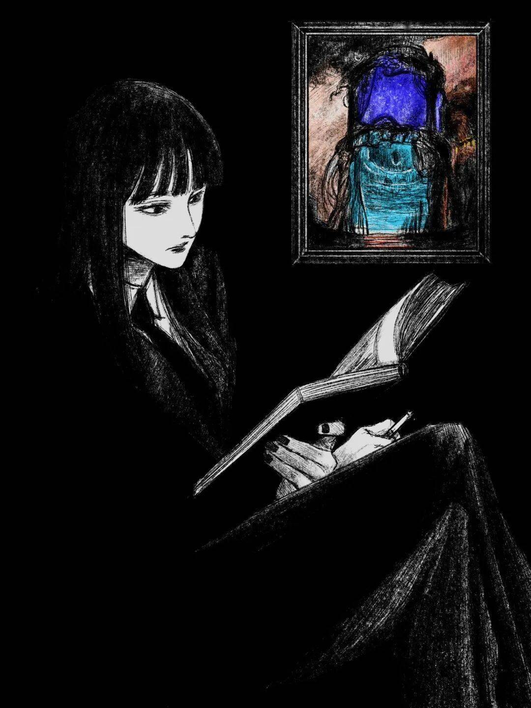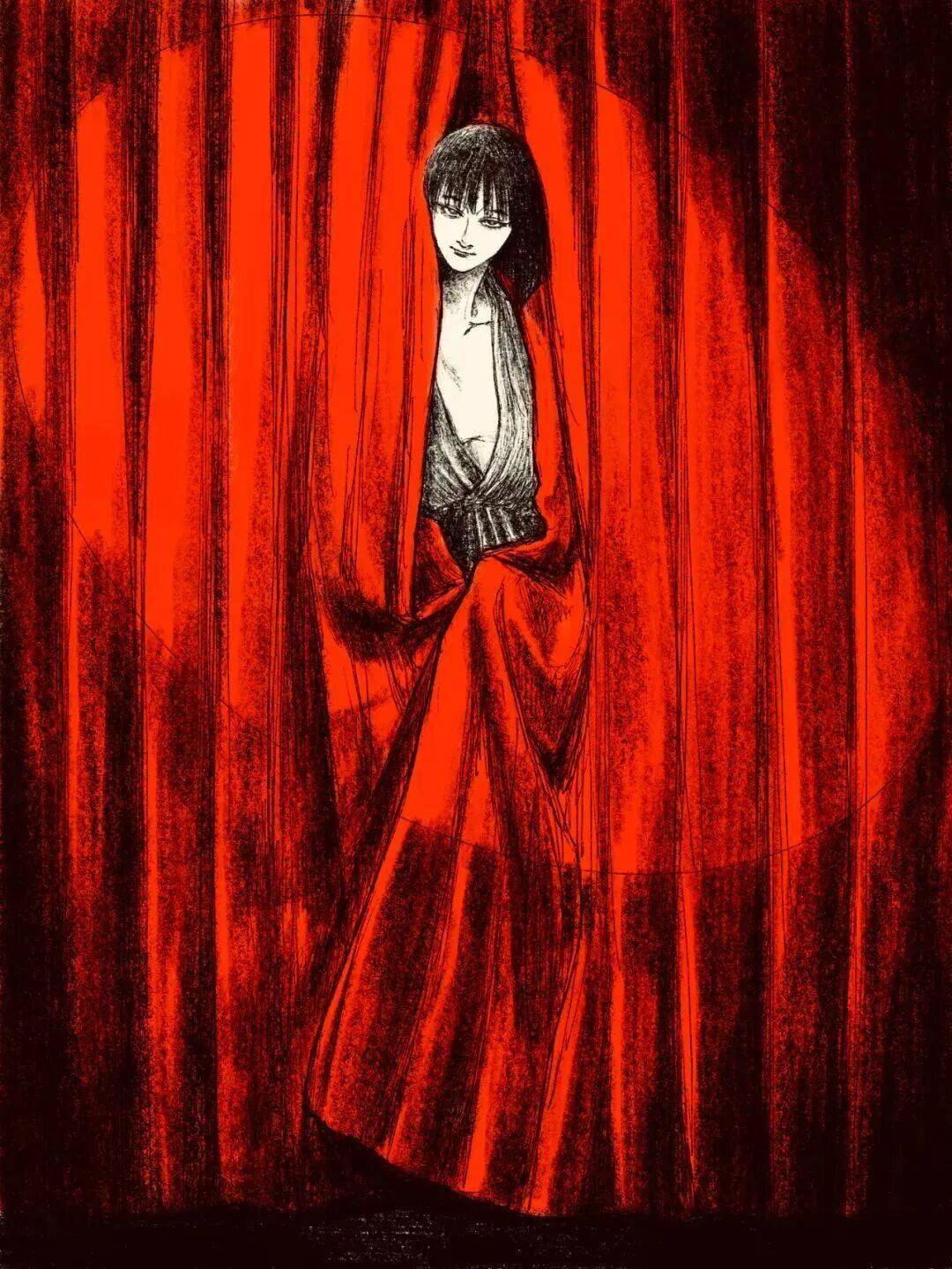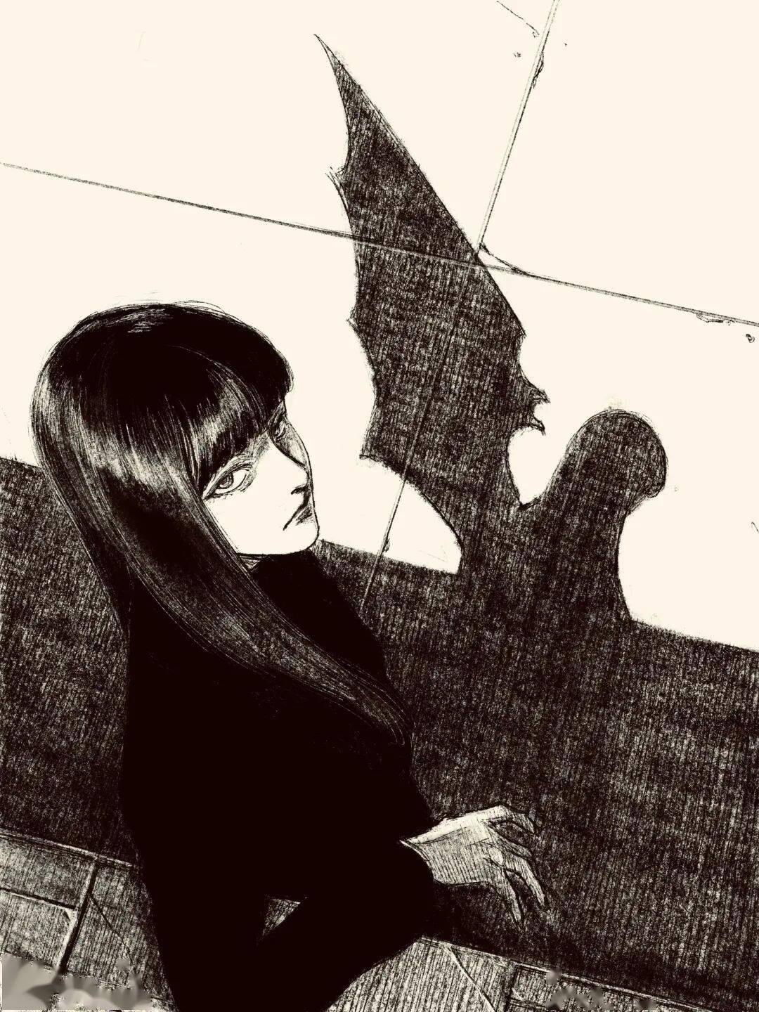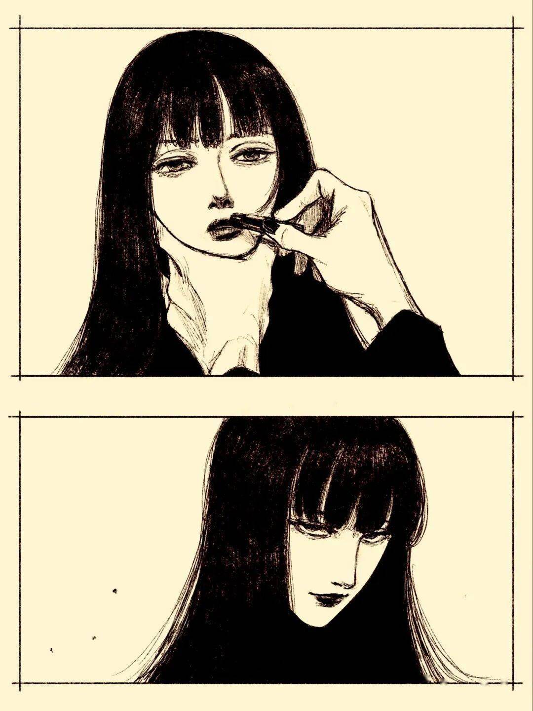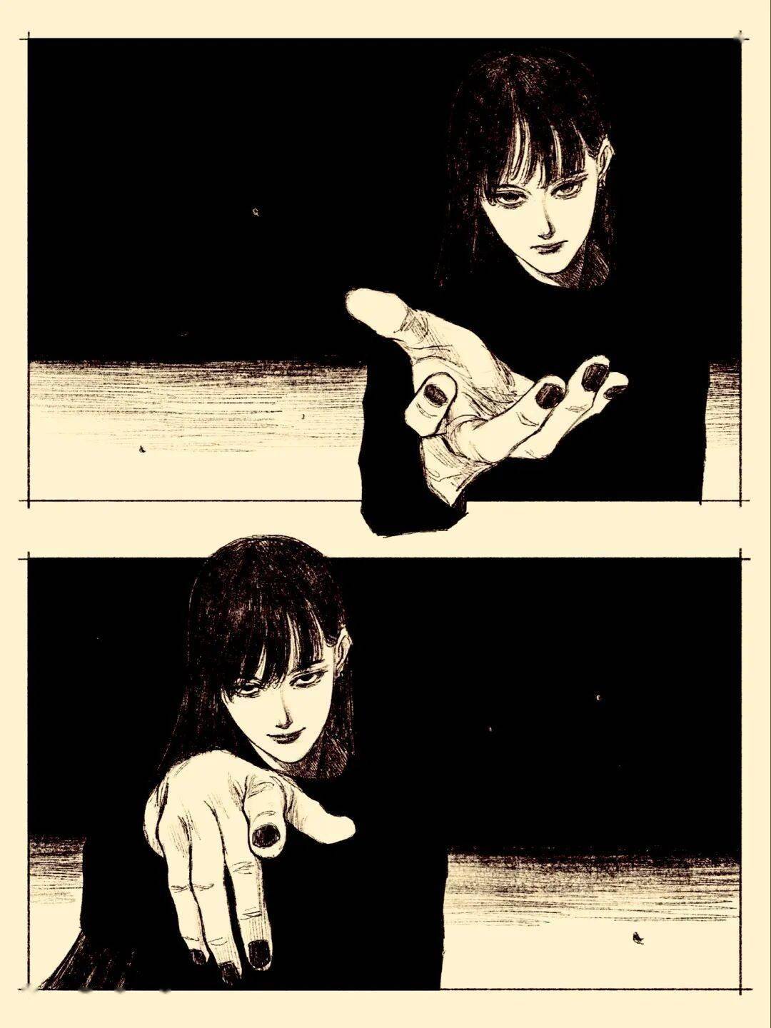 伊藤润二 绘 cr.小红书@athos 但tp-h的插画与大师伊藤润二的漫画风格相似的可不是黑长直。