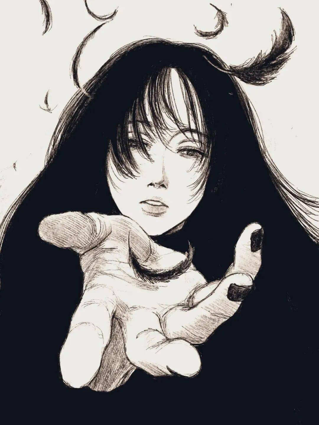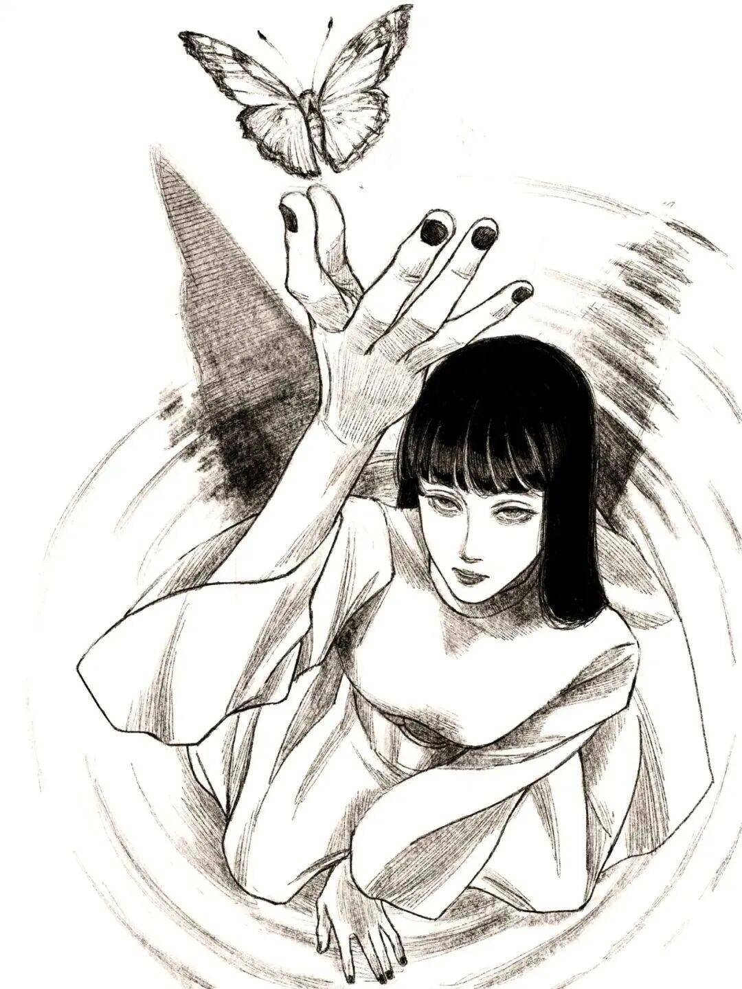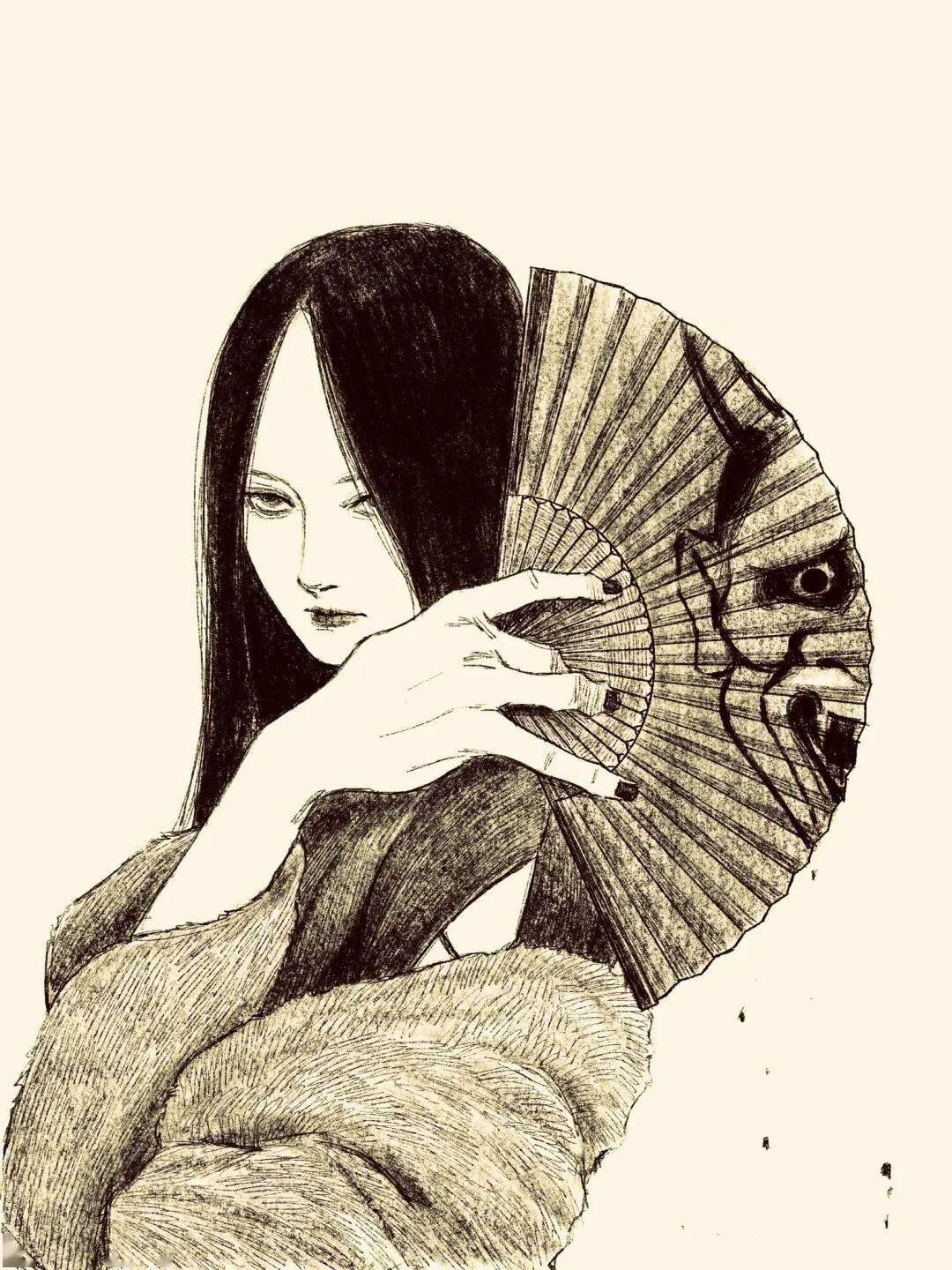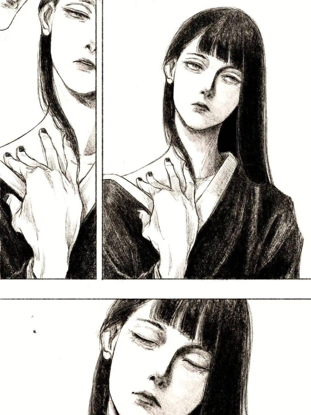 伊藤润二 绘 cr.小红书@athos 但tp-h的插画与大师伊藤润二的漫画风格相似的可不是黑长直。