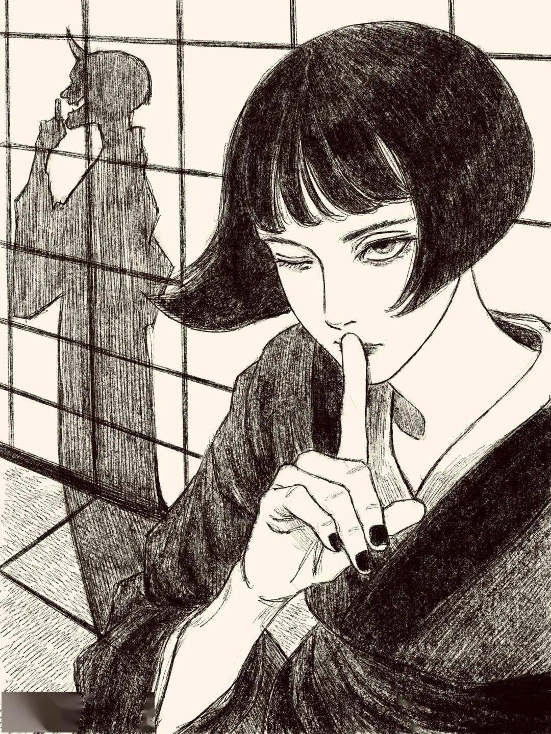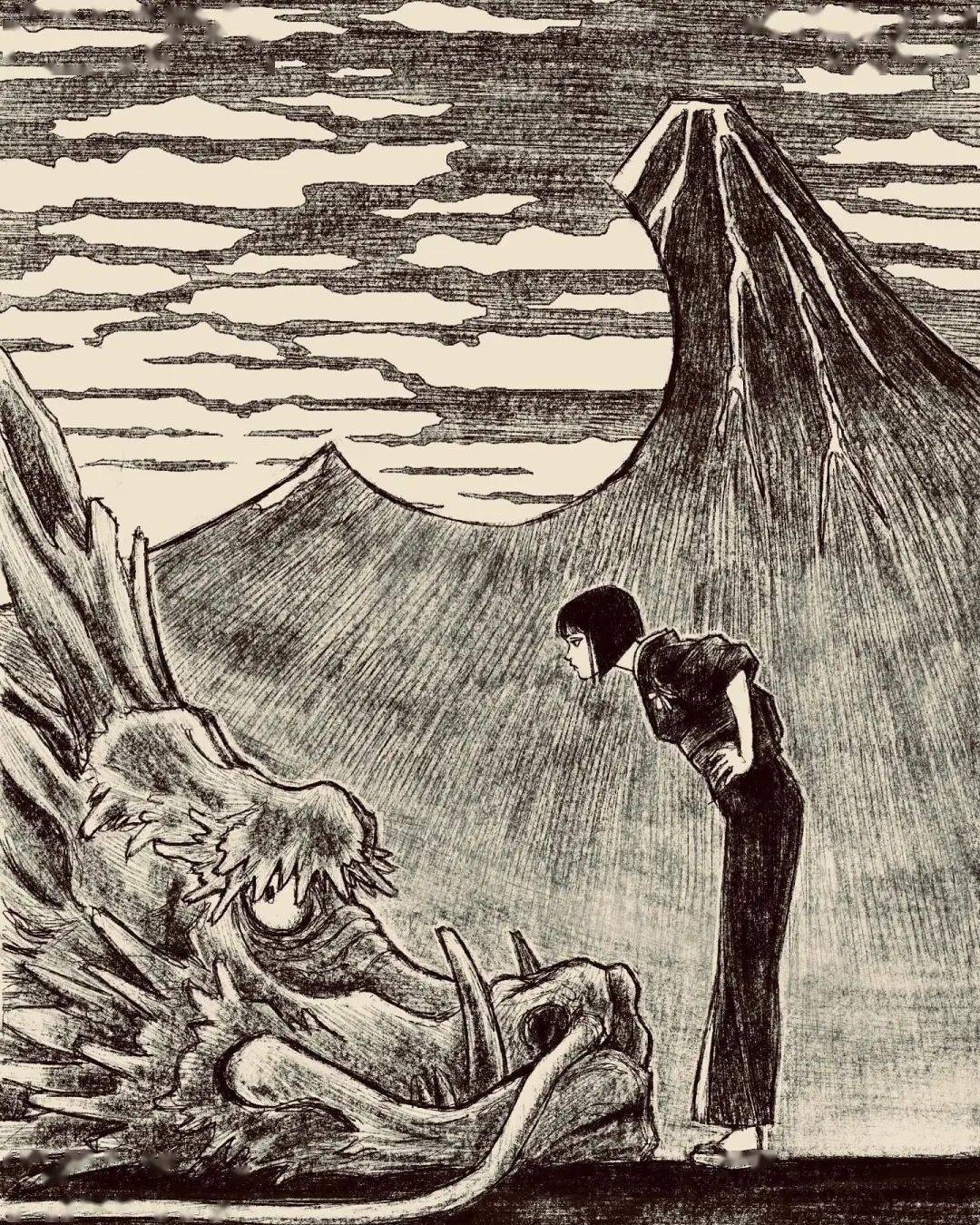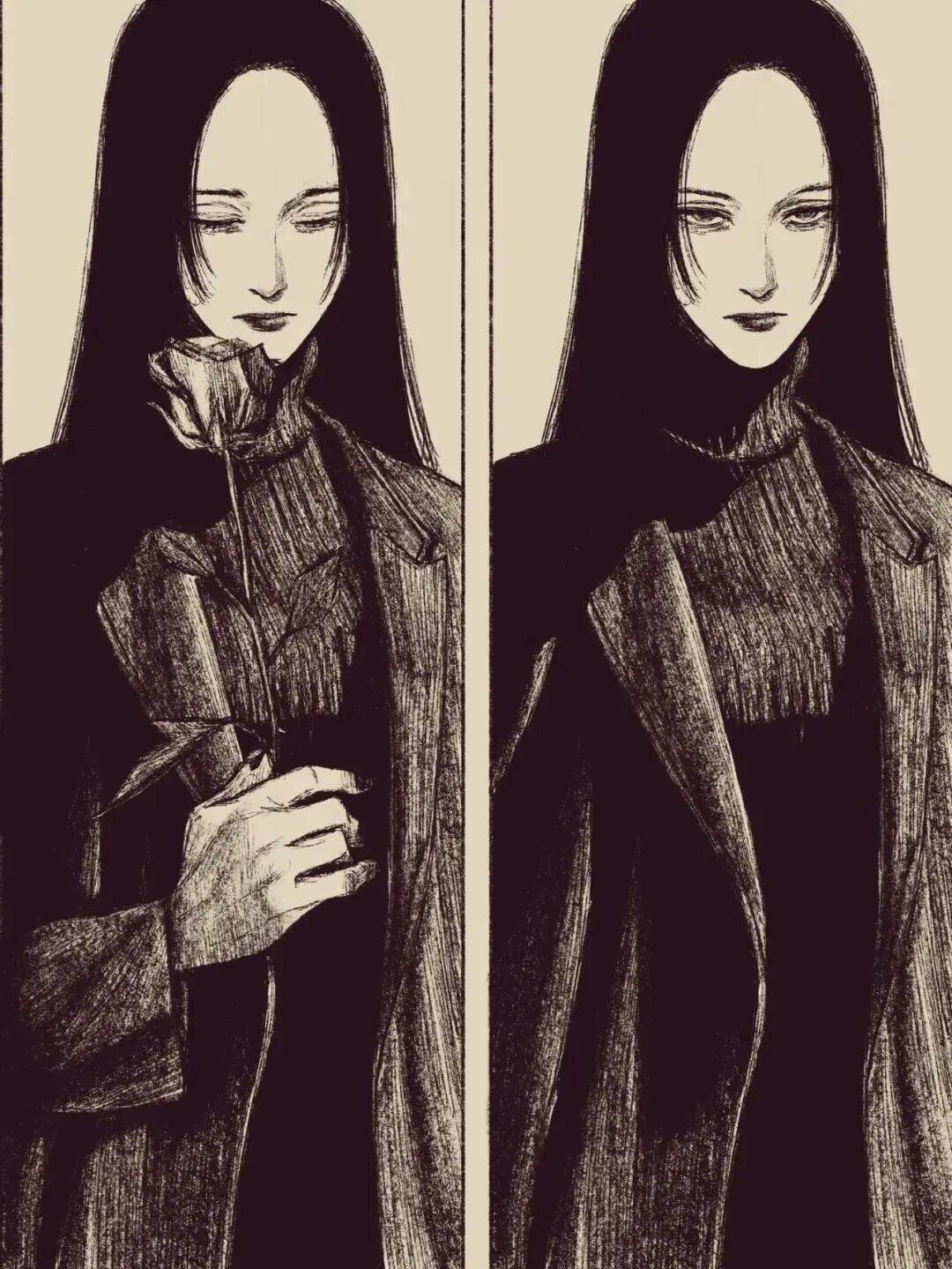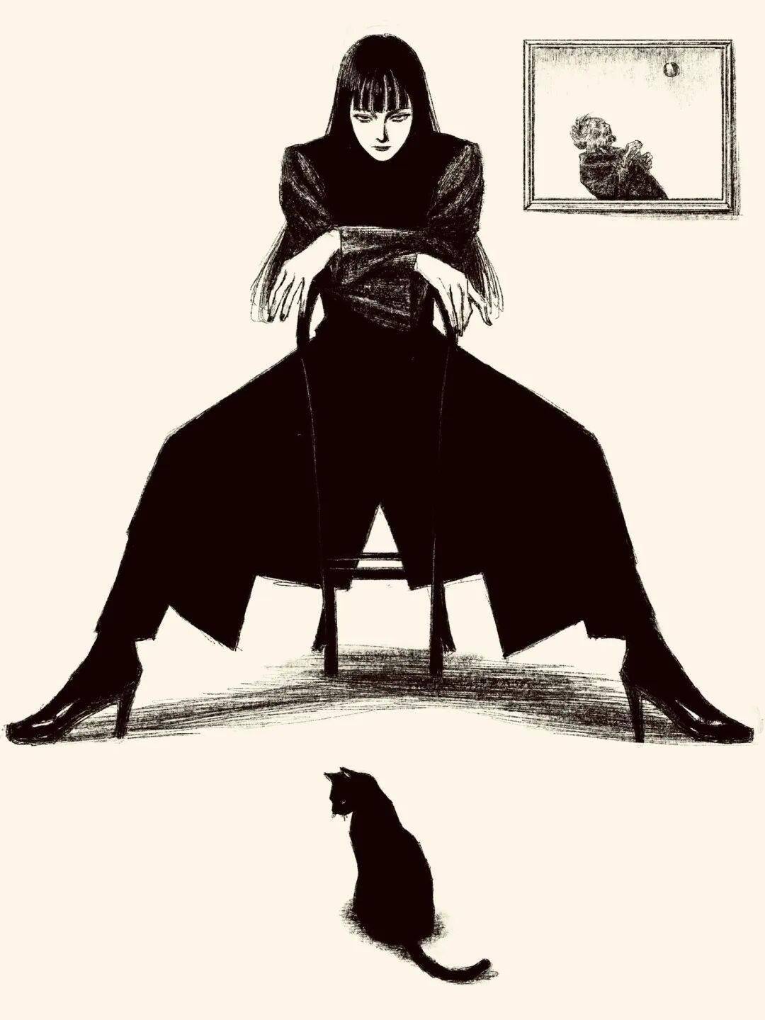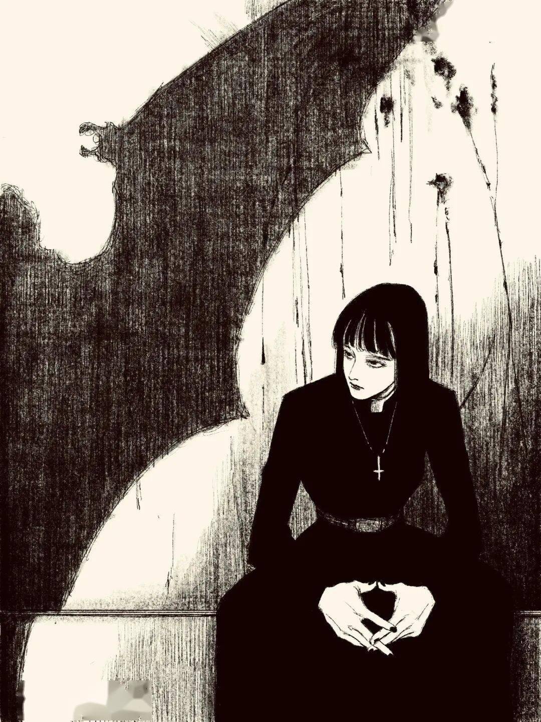 伊藤润二 绘 cr.小红书@athos 但tp-h的插画与大师伊藤润二的漫画风格相似的可不是黑长直。
