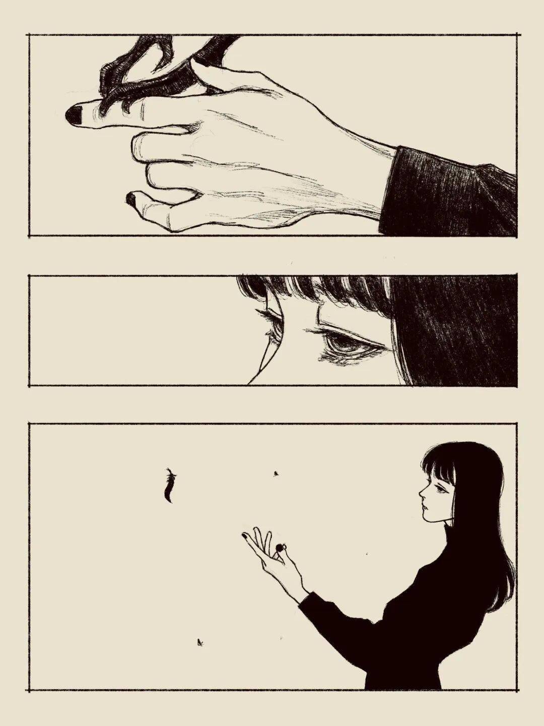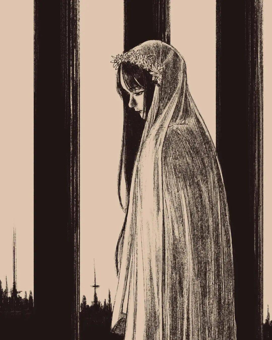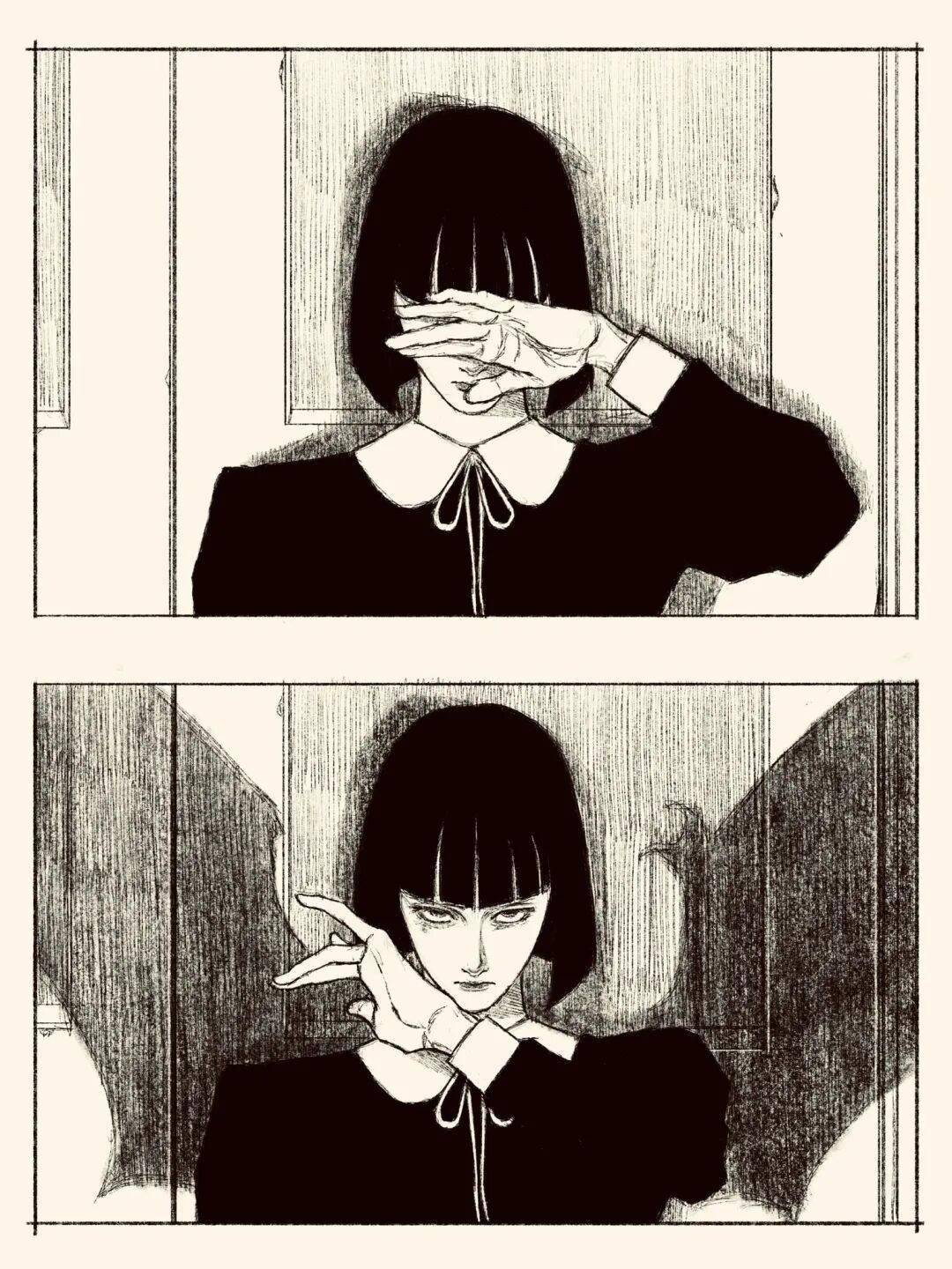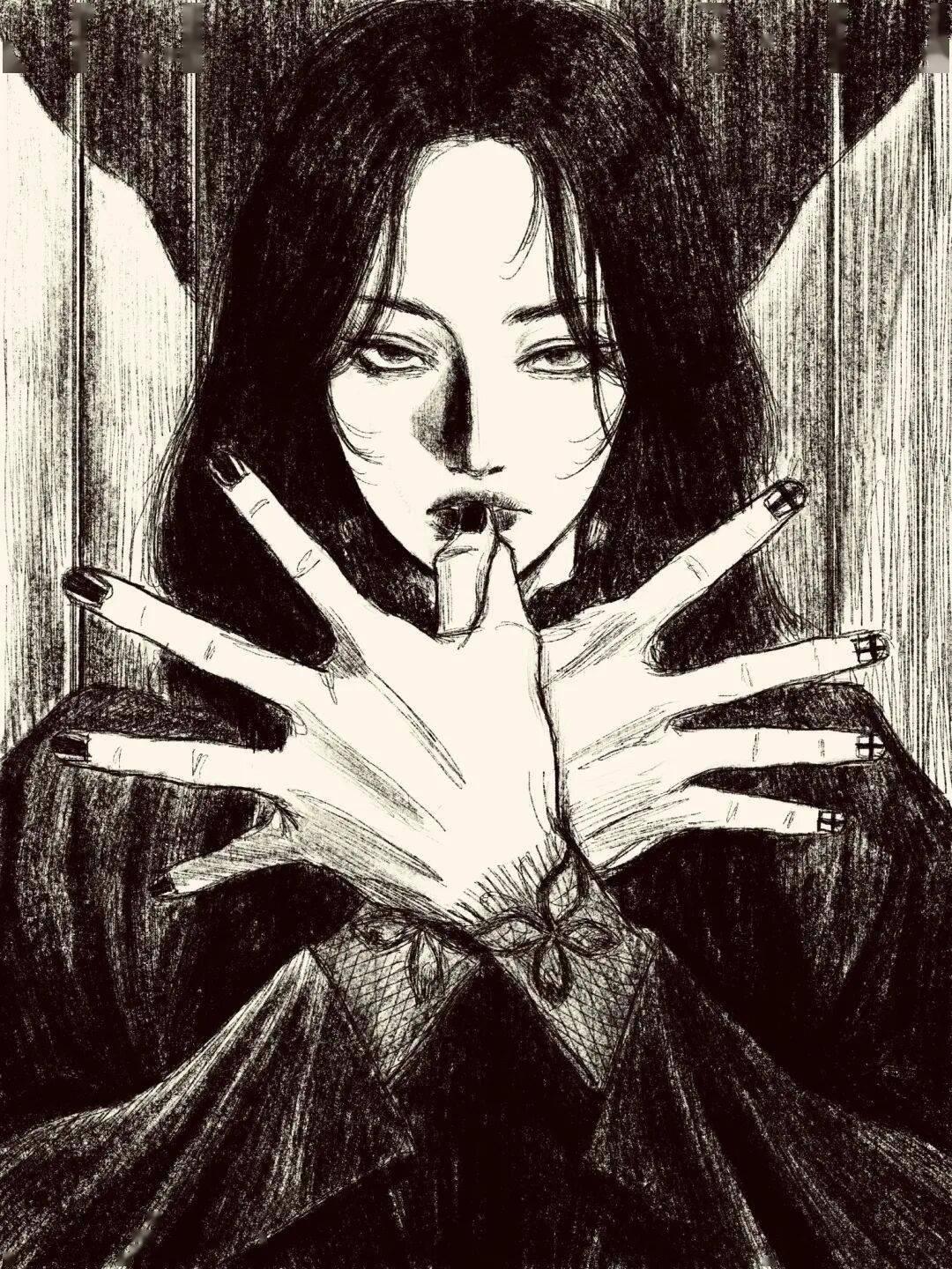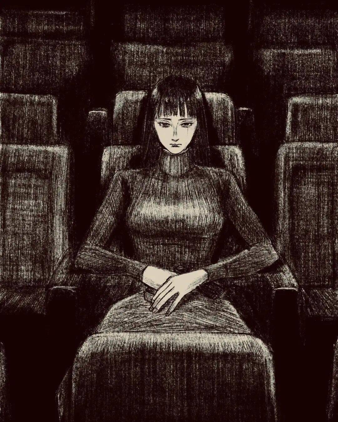 伊藤润二 绘 cr.小红书@athos 但tp-h的插画与大师伊藤润二的漫画风格相似的可不是黑长直。