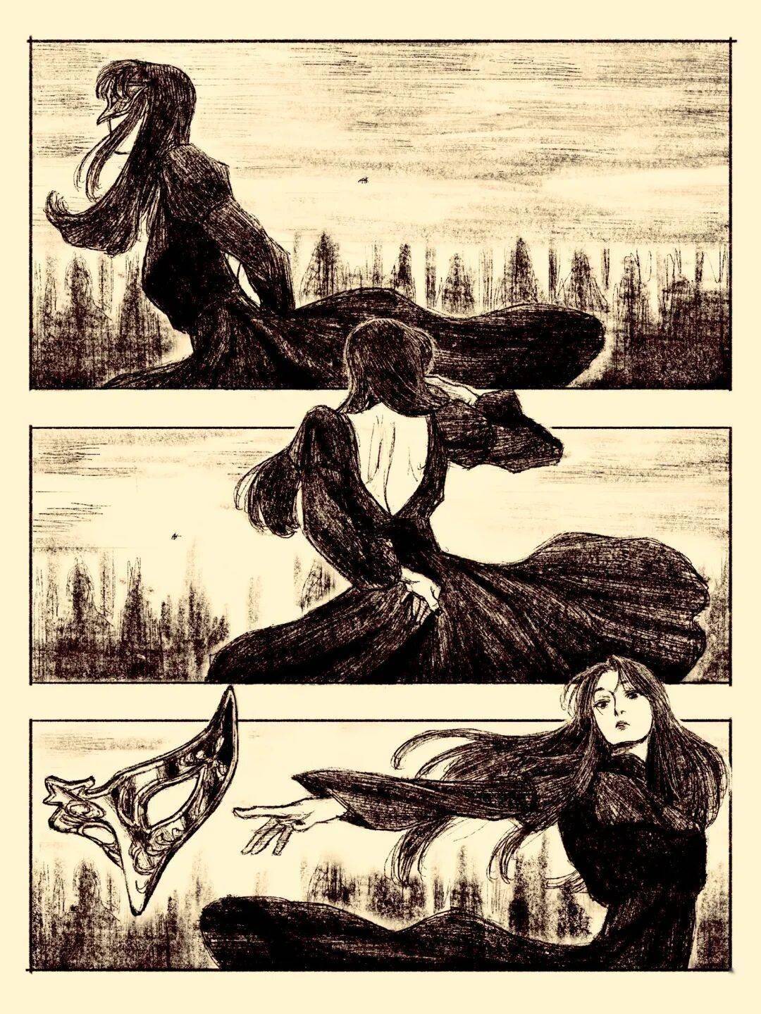 她的漫画作品也有电影级质感的风情,氛围感十分突出,但这些都从不妨碍她笔下人物成为画面的焦点,由此可见她有多擅长塑造人物。