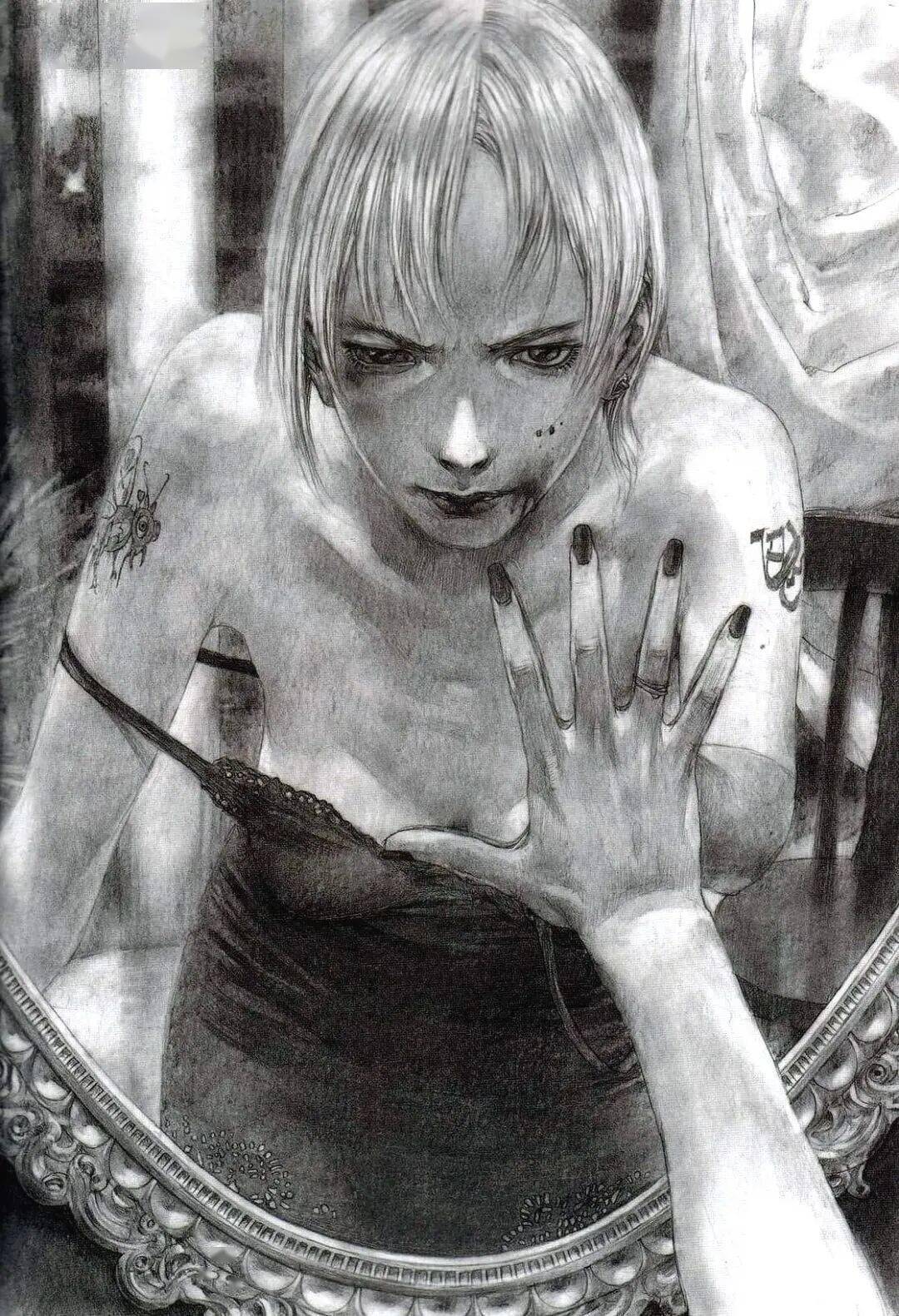 沙村广明 绘 而他最出名的,就是用铅笔作画和用极度凌厉的线条刻画极端残酷的画面这两个特点。