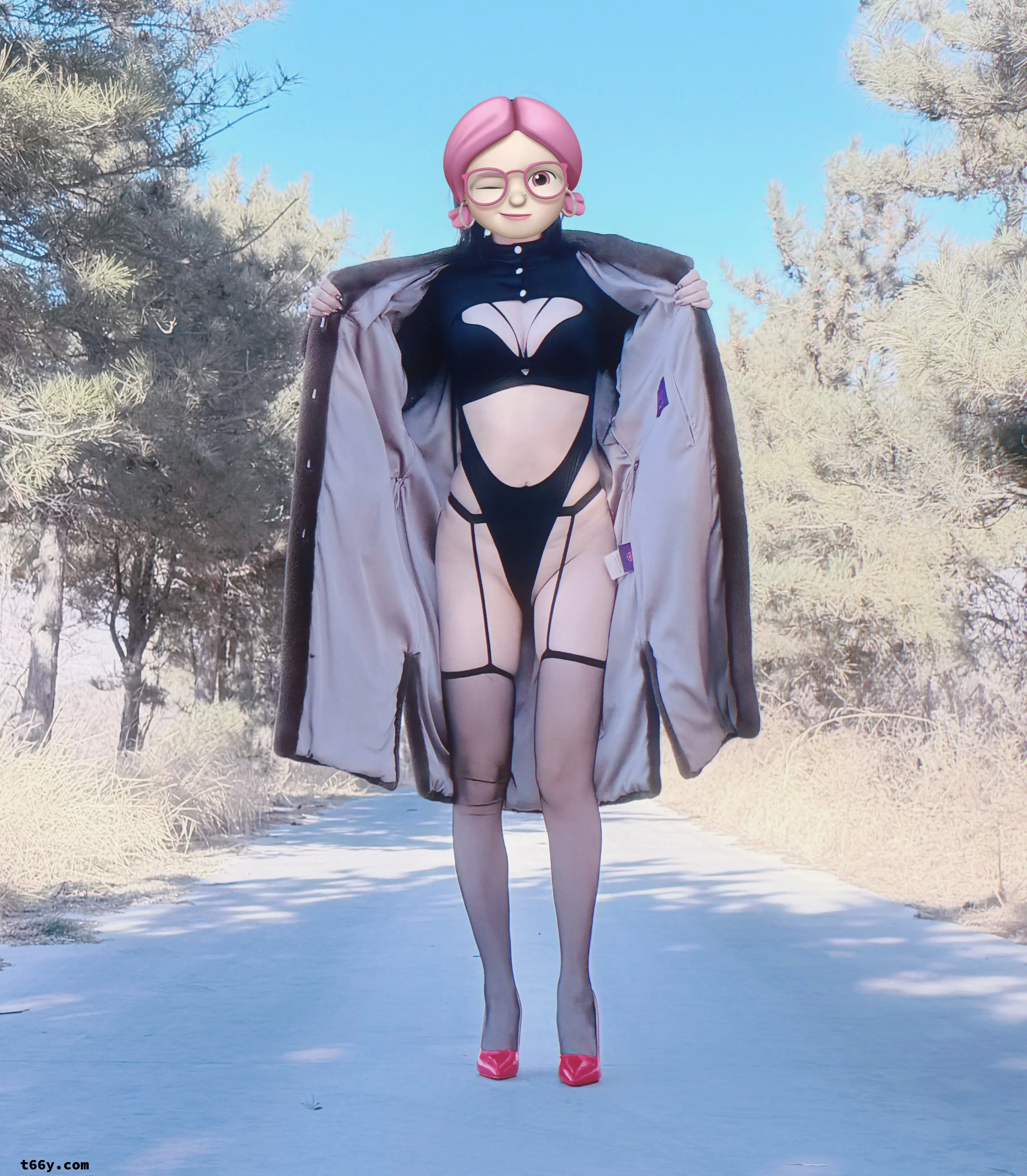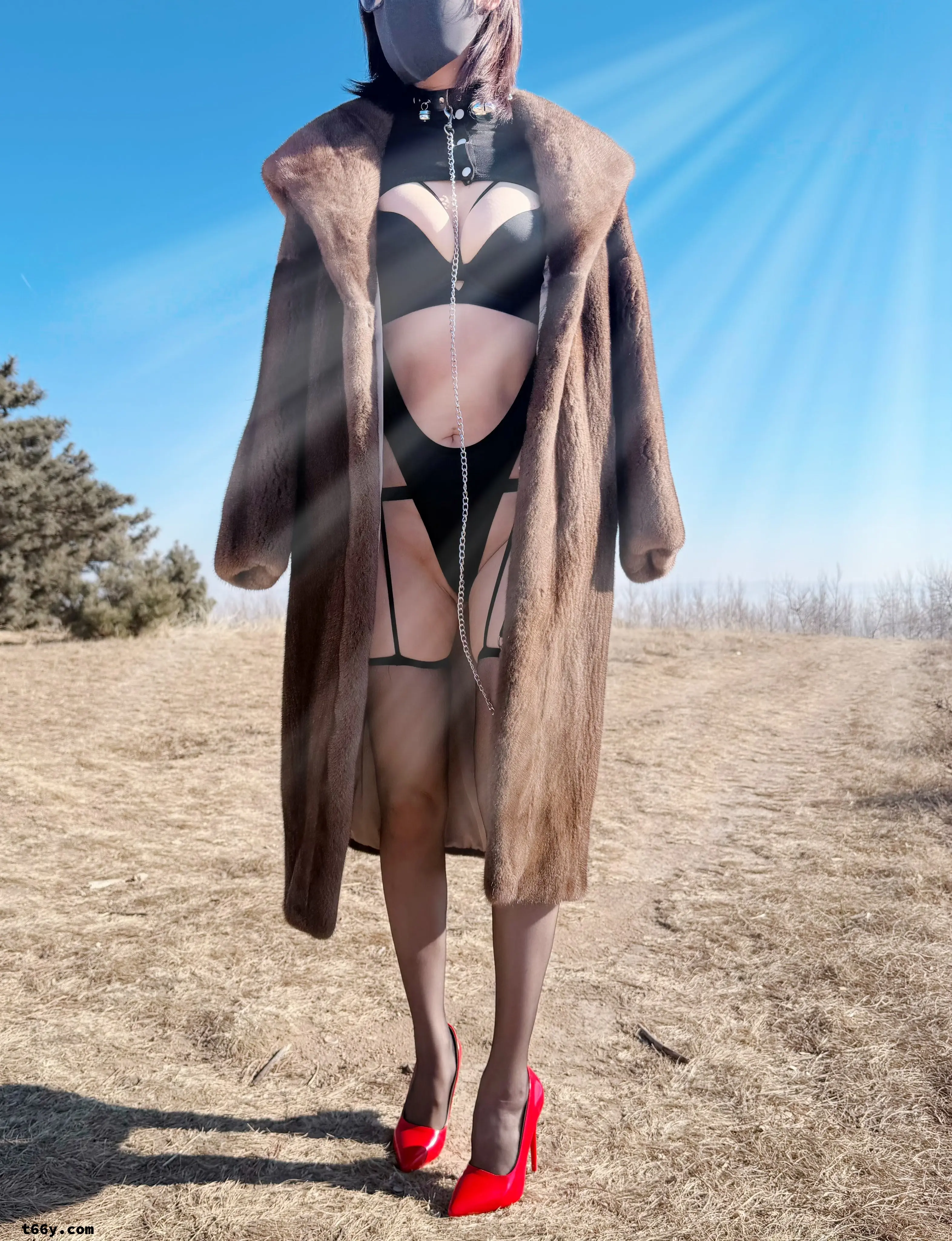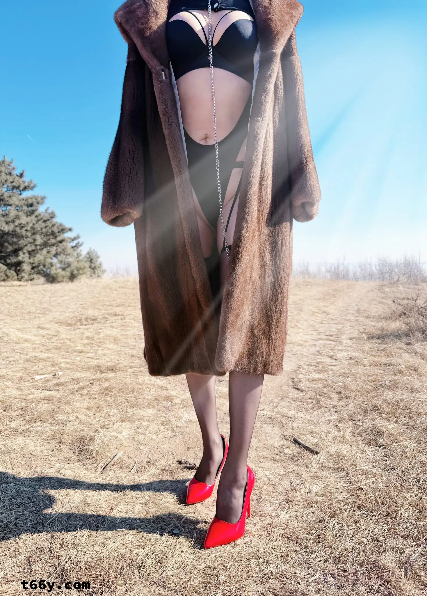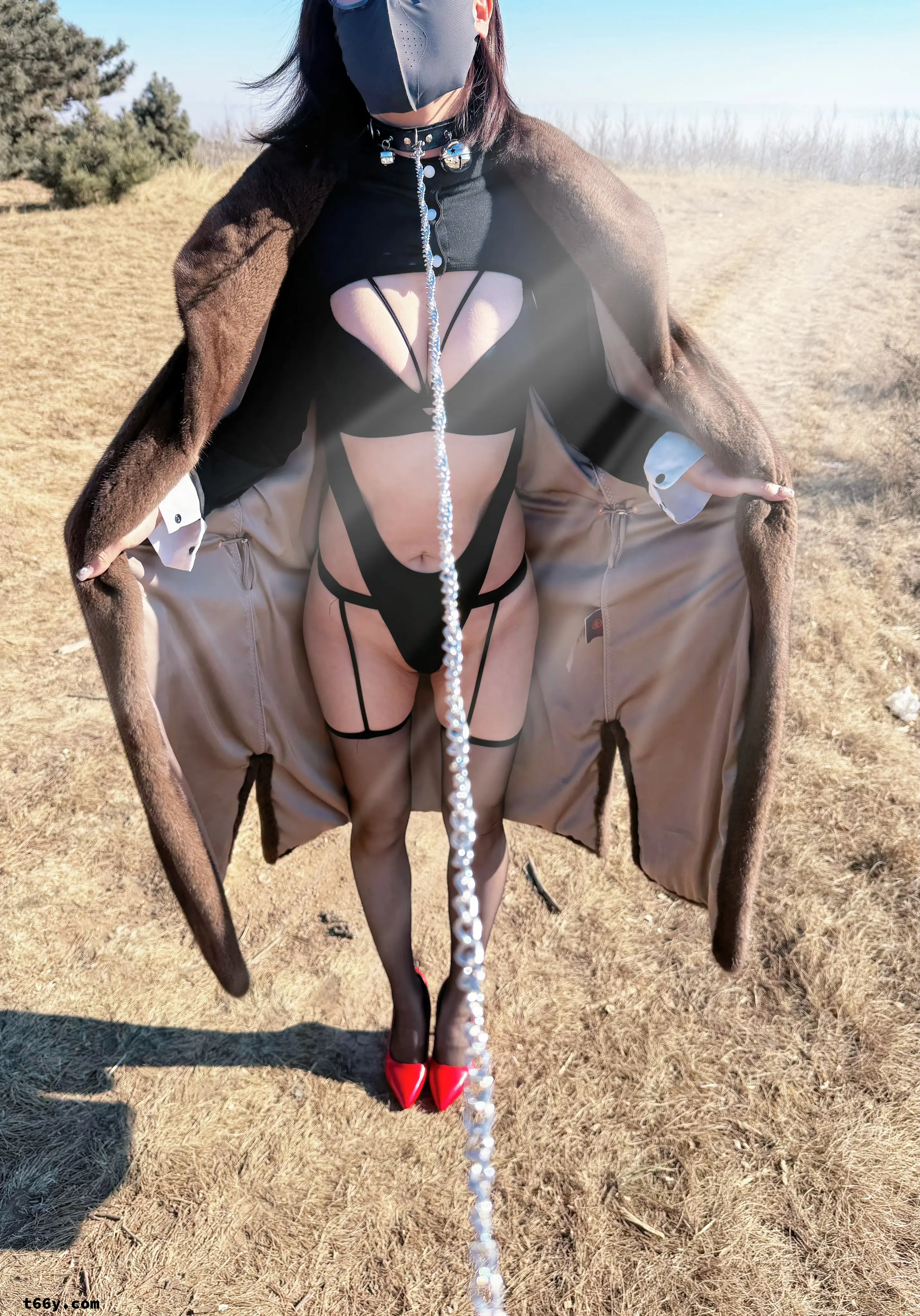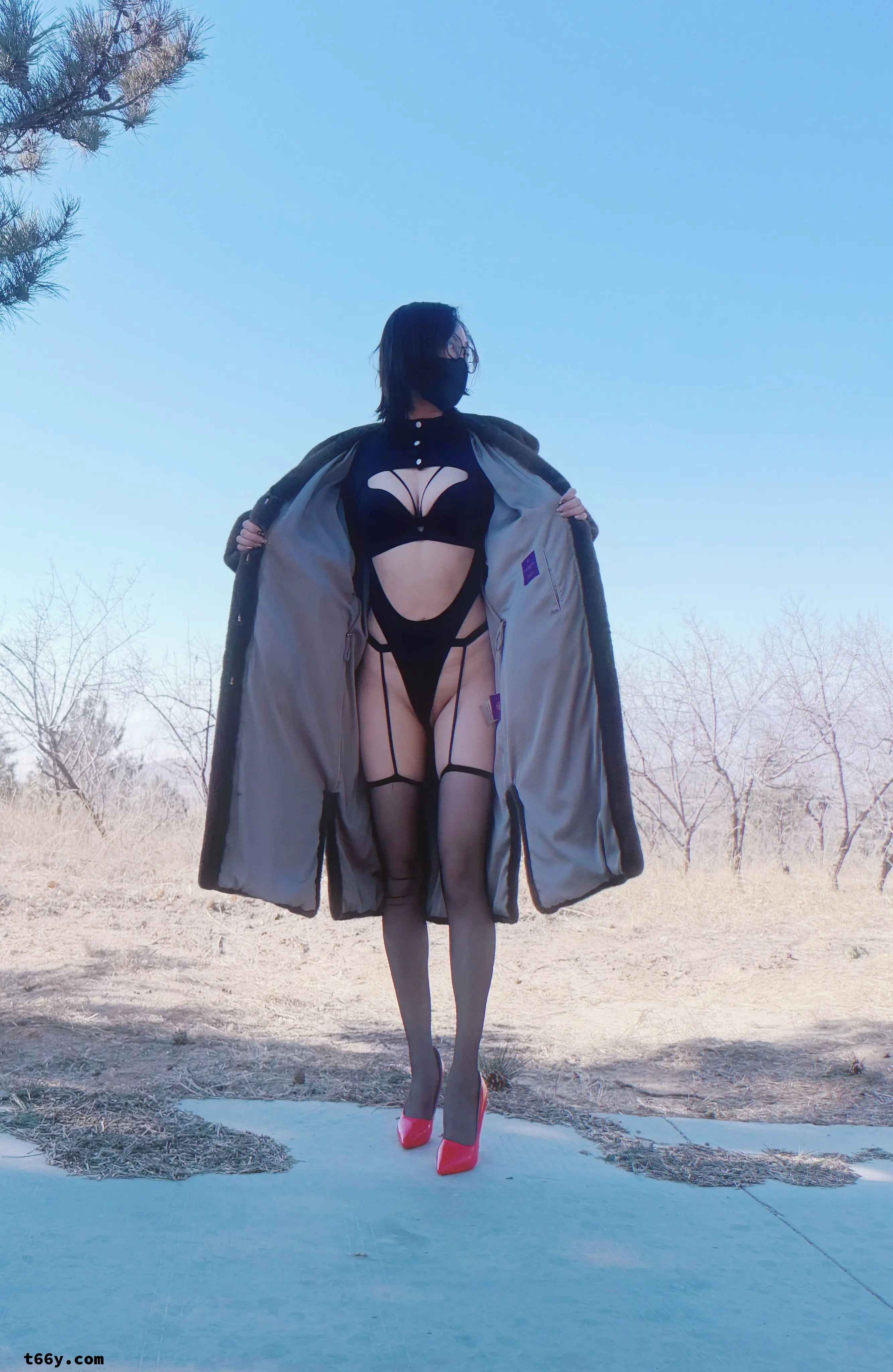 大衣下,是女人性感的身躯。