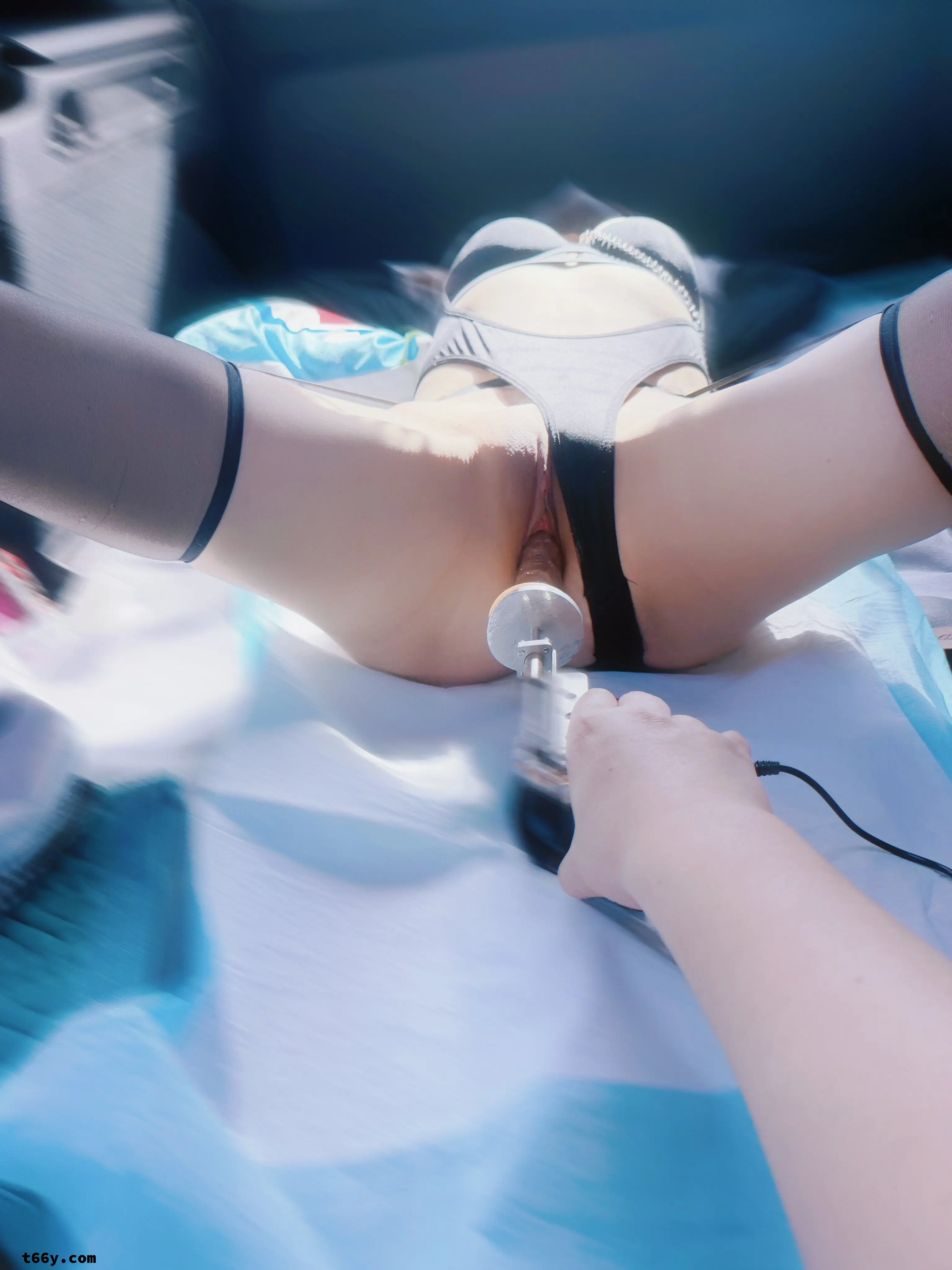 全自动的假肉棒,插进去人妻早已湿透的逼里。