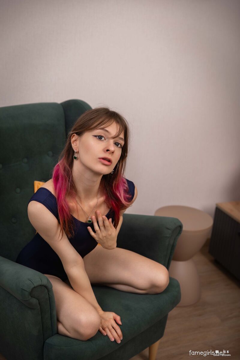 抬起双腿,露出剃光的阴部